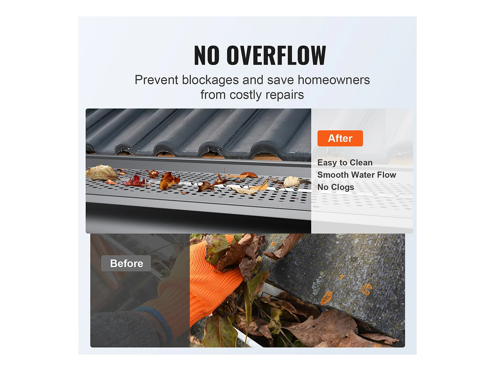Protège-Gouttière SucceBuy Protège-Gouttière de 6 Po de Large et 208 Pi de Long, Couverture en Maille, Protection Contre les Débris de Feuilles