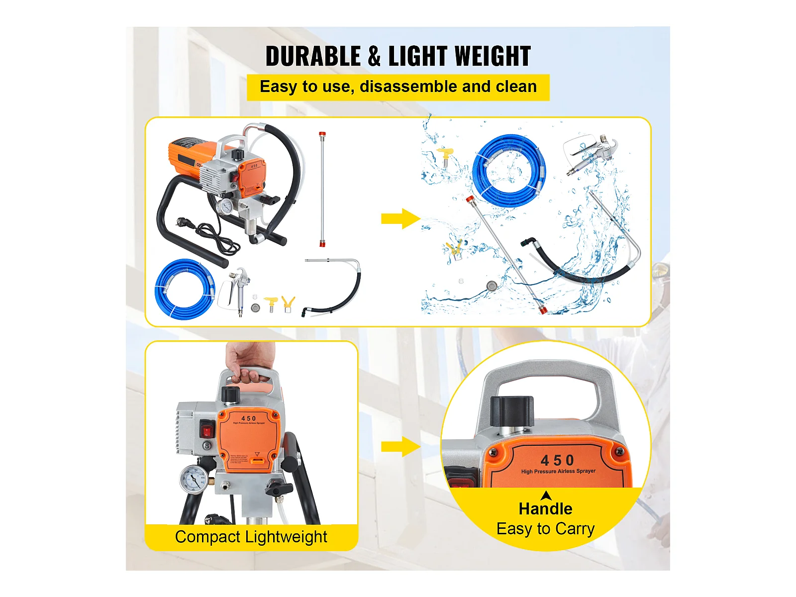 Pulvérisateur Sans Air SucceBuy 1500 W, 3000 PSI, 1,8 L/min, pour Peinture Intérieure et Extérieure, Fournitures, Clôtures, Construction