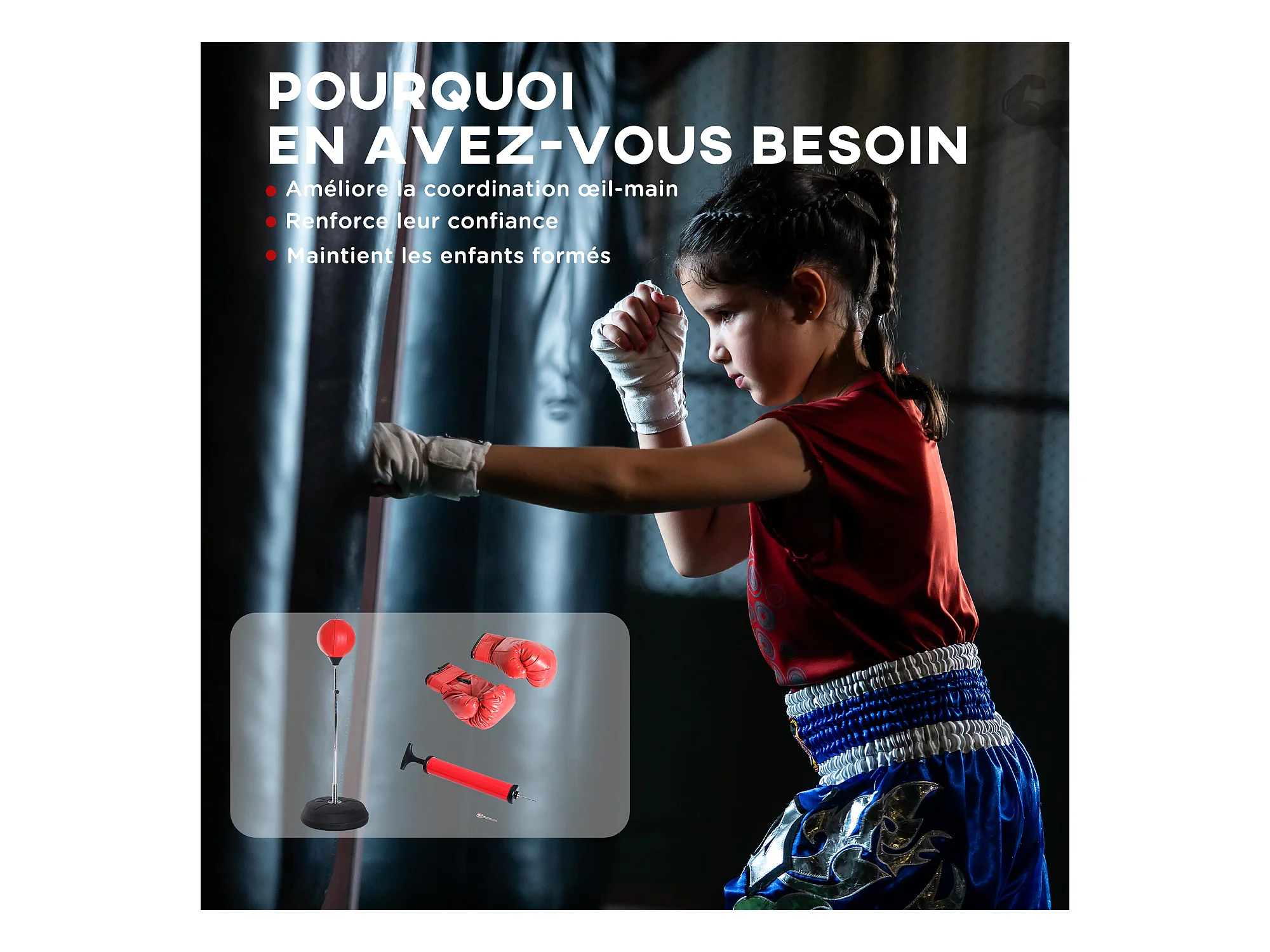 Sac de frappe punching ball avec gants et pompe hauteur reglable 125 à 145 cm