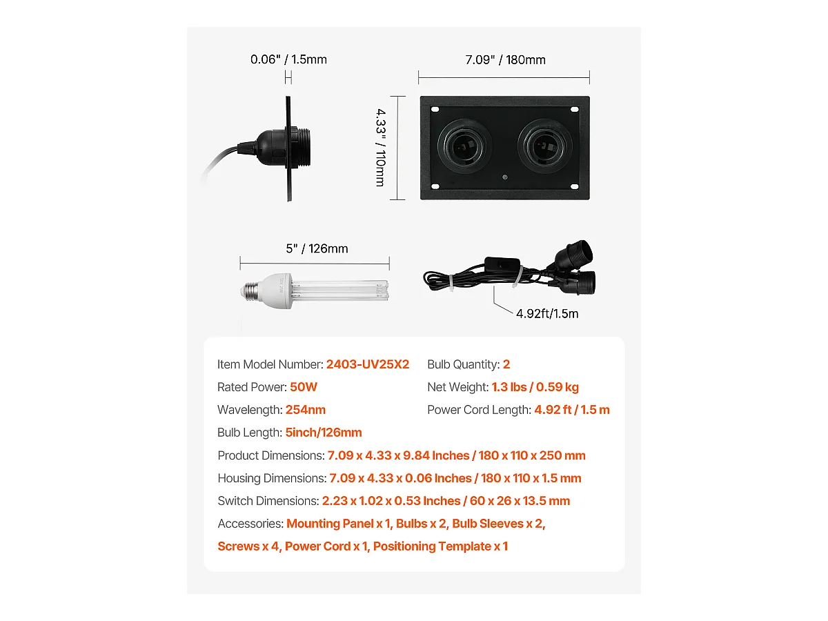 Purificateur D'air SucceBuy HVAC, Lumière UV 50 W 13 cm pour Systèmes de Climatisation, Toute la Maison