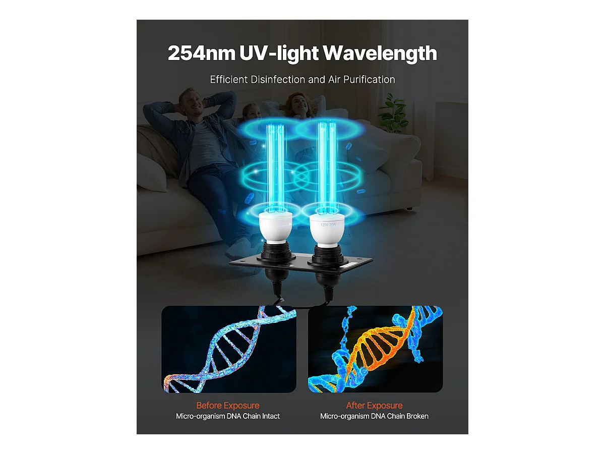 Purificateur D'air SucceBuy HVAC, Lumière UV 72 W 41 cm pour Toute la Maison dans le Conduit pour AC