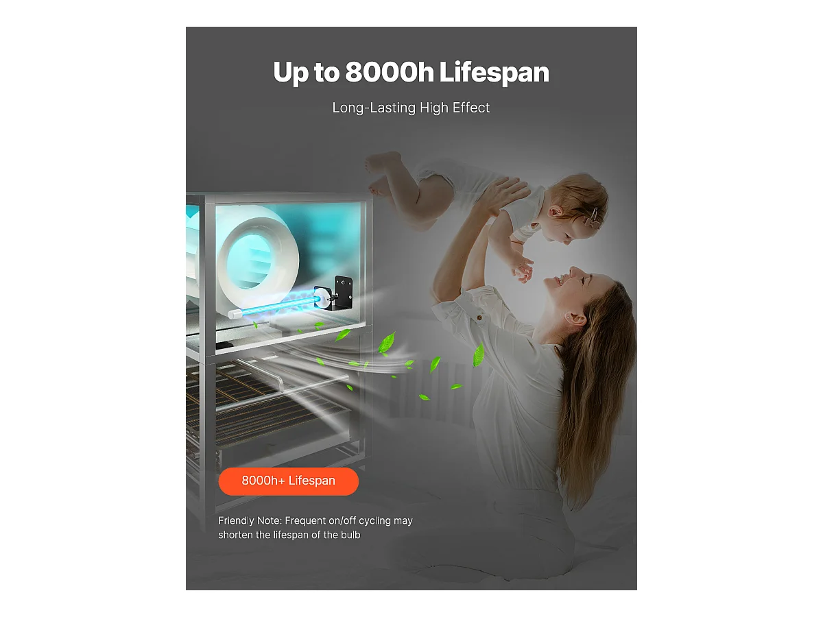 Purificateur D'air SucceBuy HVAC, Lumière UV 72 W 41 cm pour Toute la Maison dans le Conduit pour AC