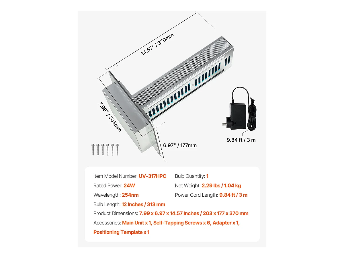 Purificateur D'air SucceBuy HVAC, avec Lumière UV 25 W 43 cm et Aimant, pour Conduit de Climatisation