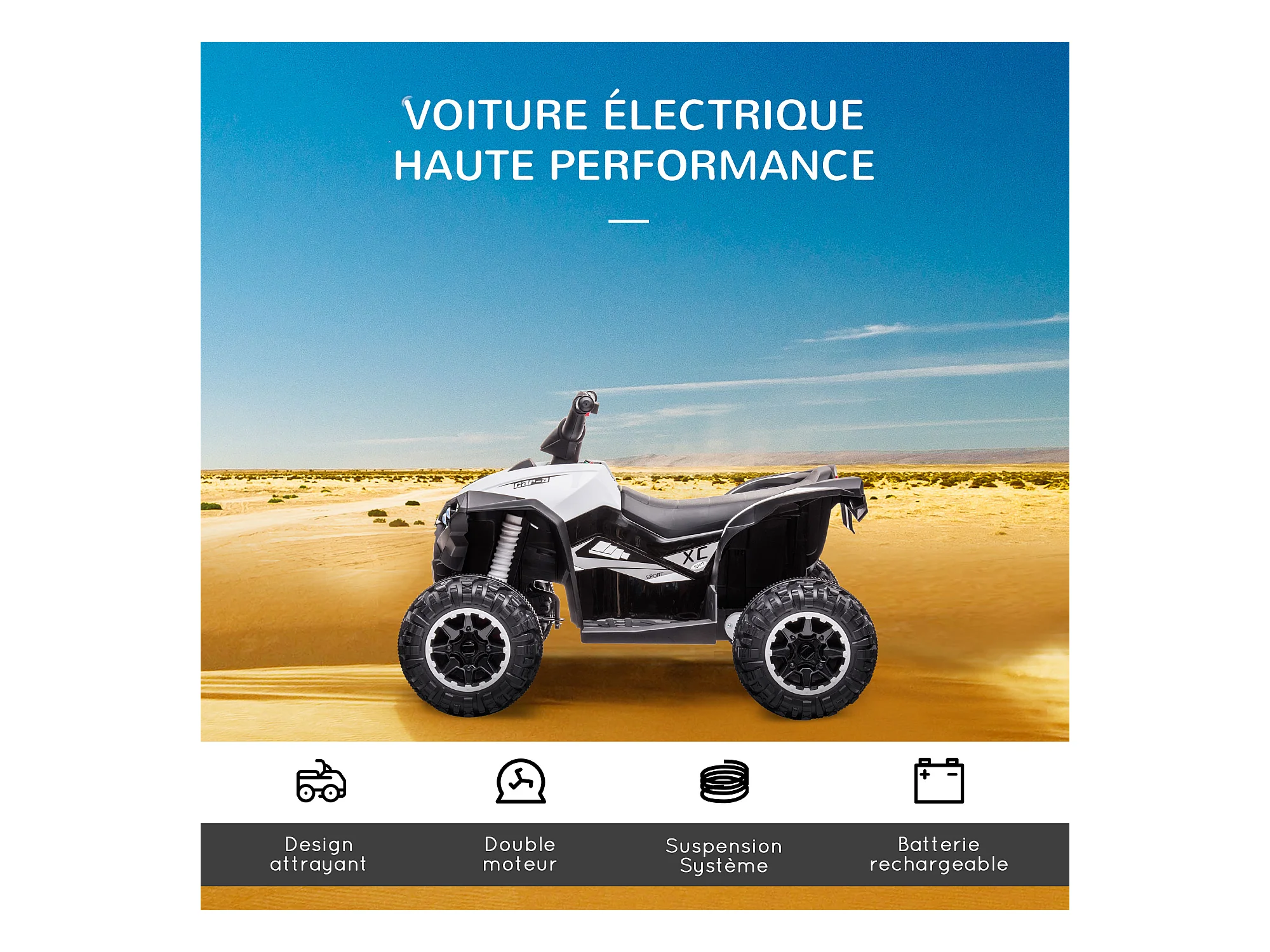 Quad buggy électrique enfant 12 V 3 Km/h max. effets lumineux et sonores blanc noir
