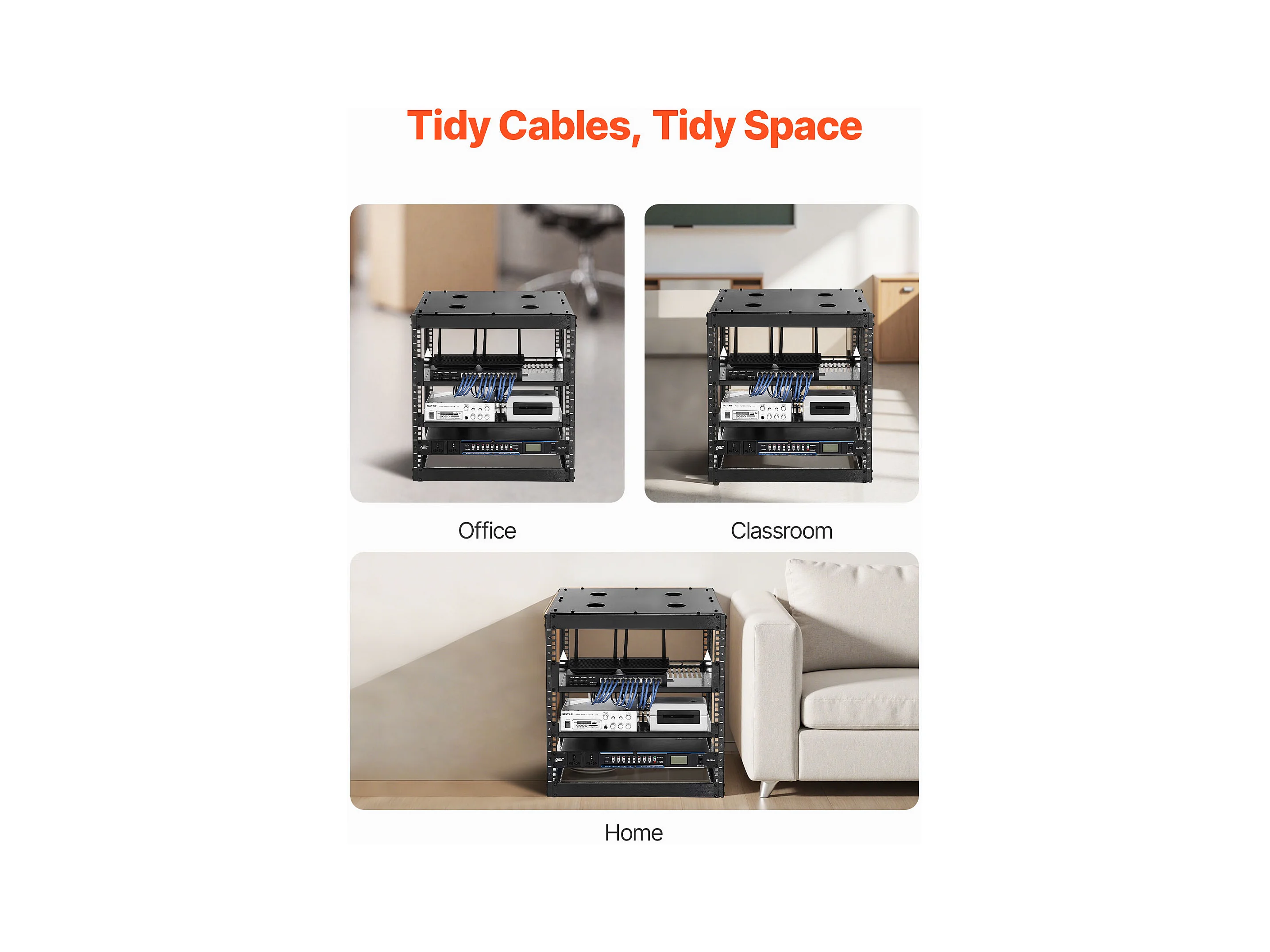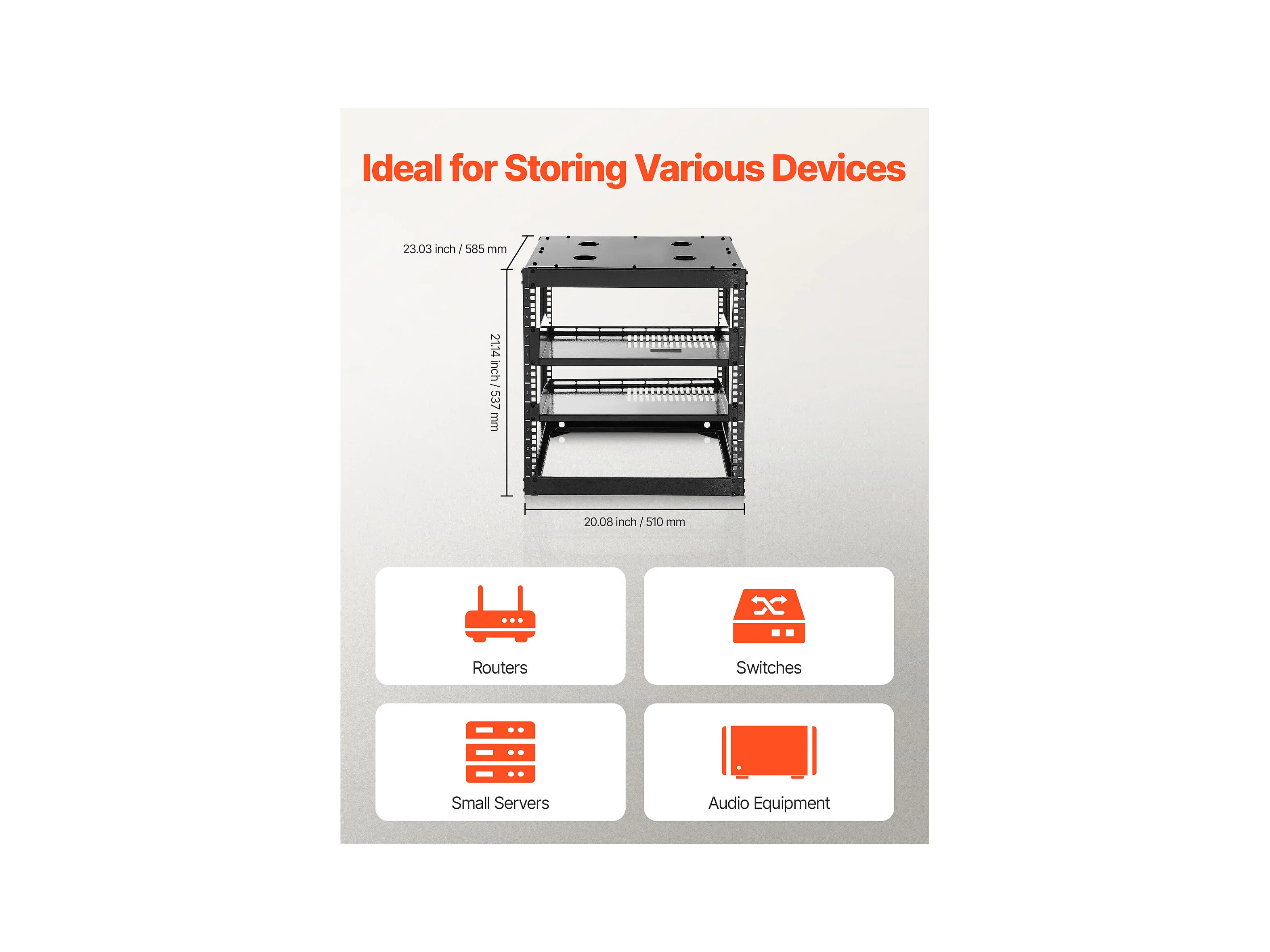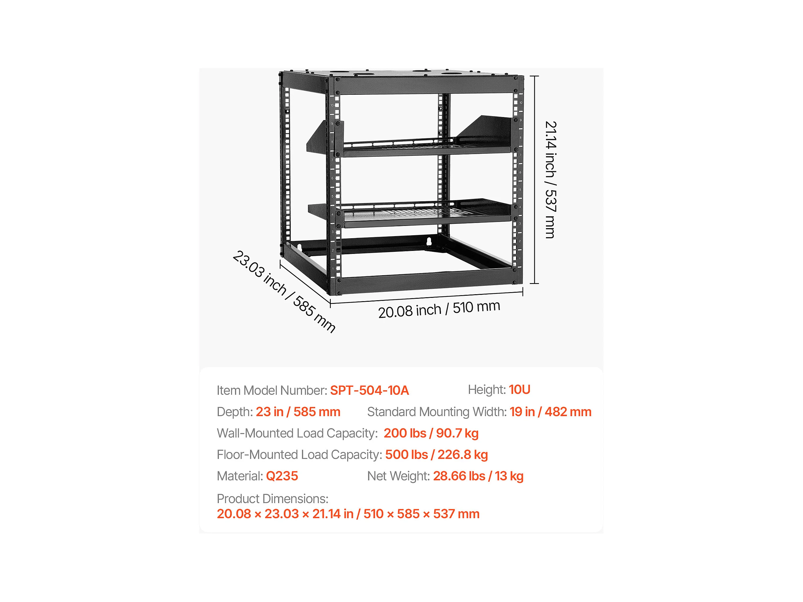 Rack de Serveur SucceBuy à Cadre Ouvert 10U Support de Réseau Autoportant ou Mural, Profondeur 58.5 cm, avec Étagères Ventilées, Matériel de Montage