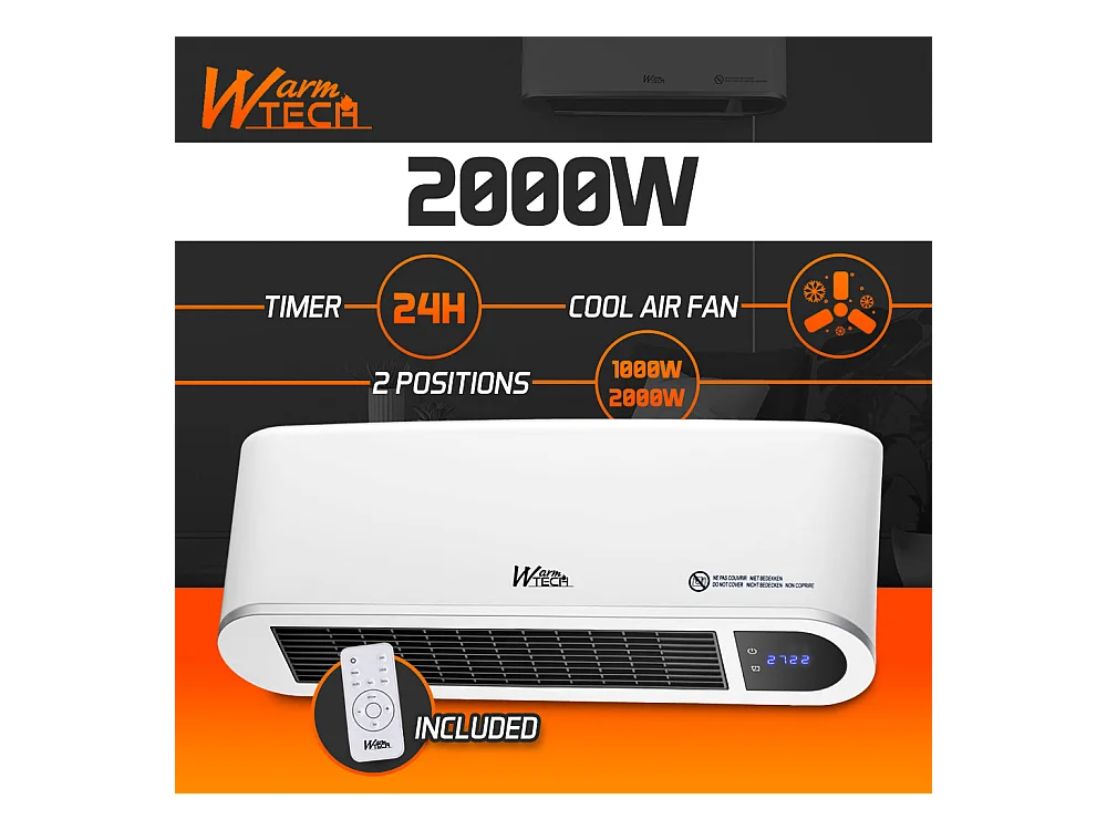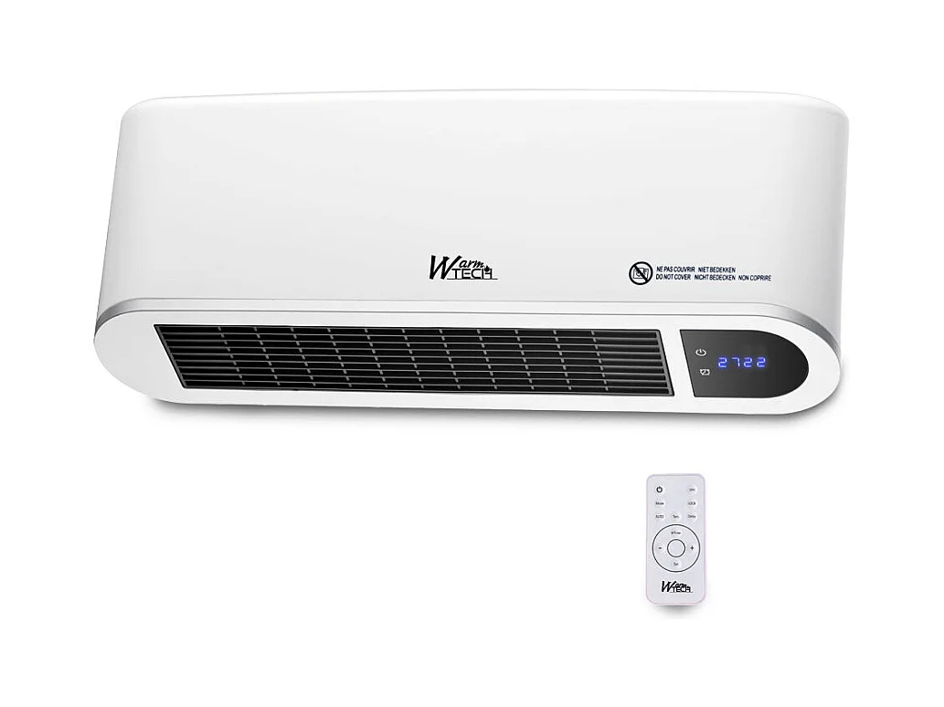 Radiateur mural soufflant 2000 W max. - chauffage céramique PTC - température réglable, timer, oscillation - télécommande incluse