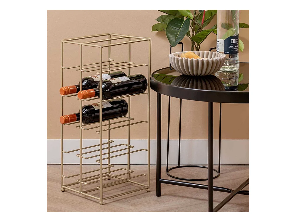 Range Bouteilles en métal doré et bois capacité 6 Bouteilles