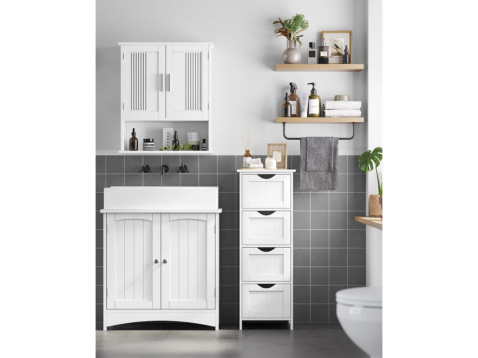 Rangement de salle de bain Blanc avec 4 tiroirs - L30 cm
