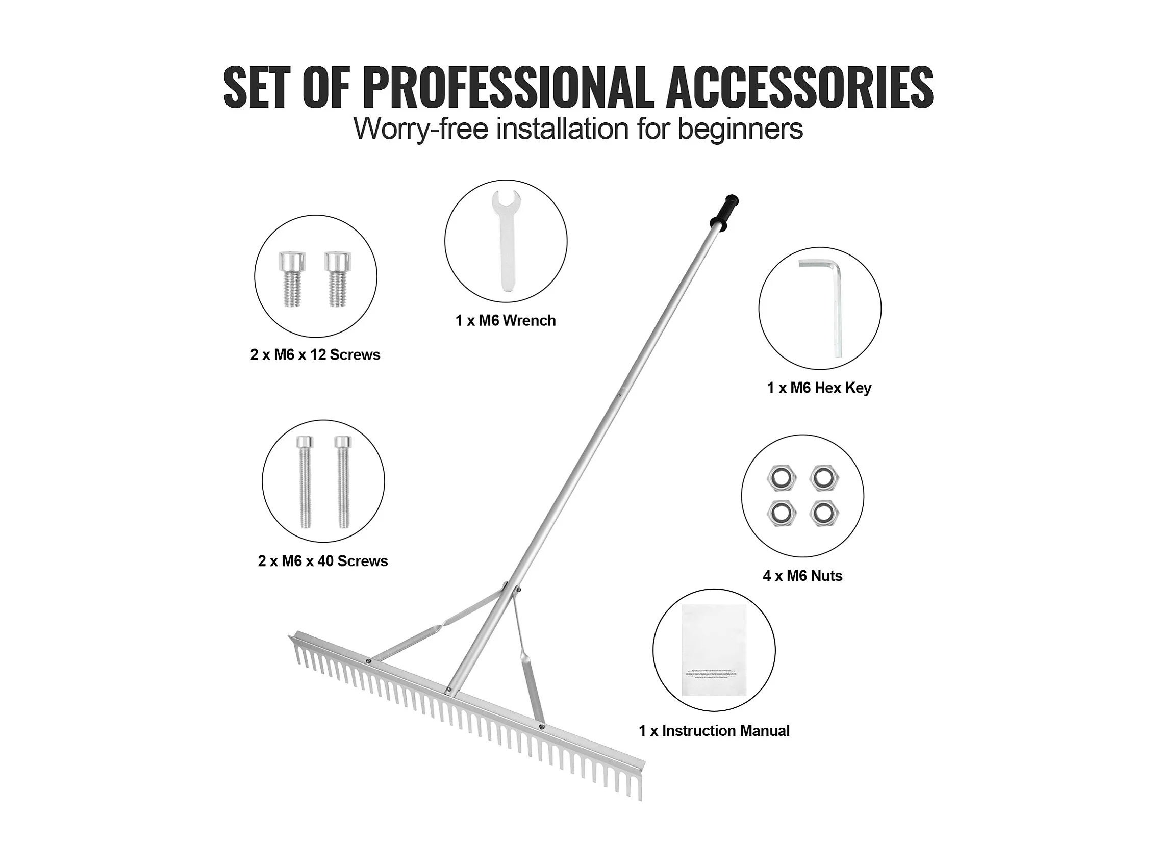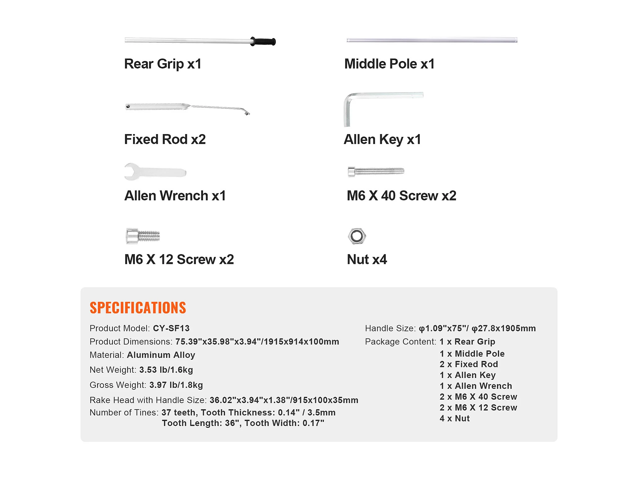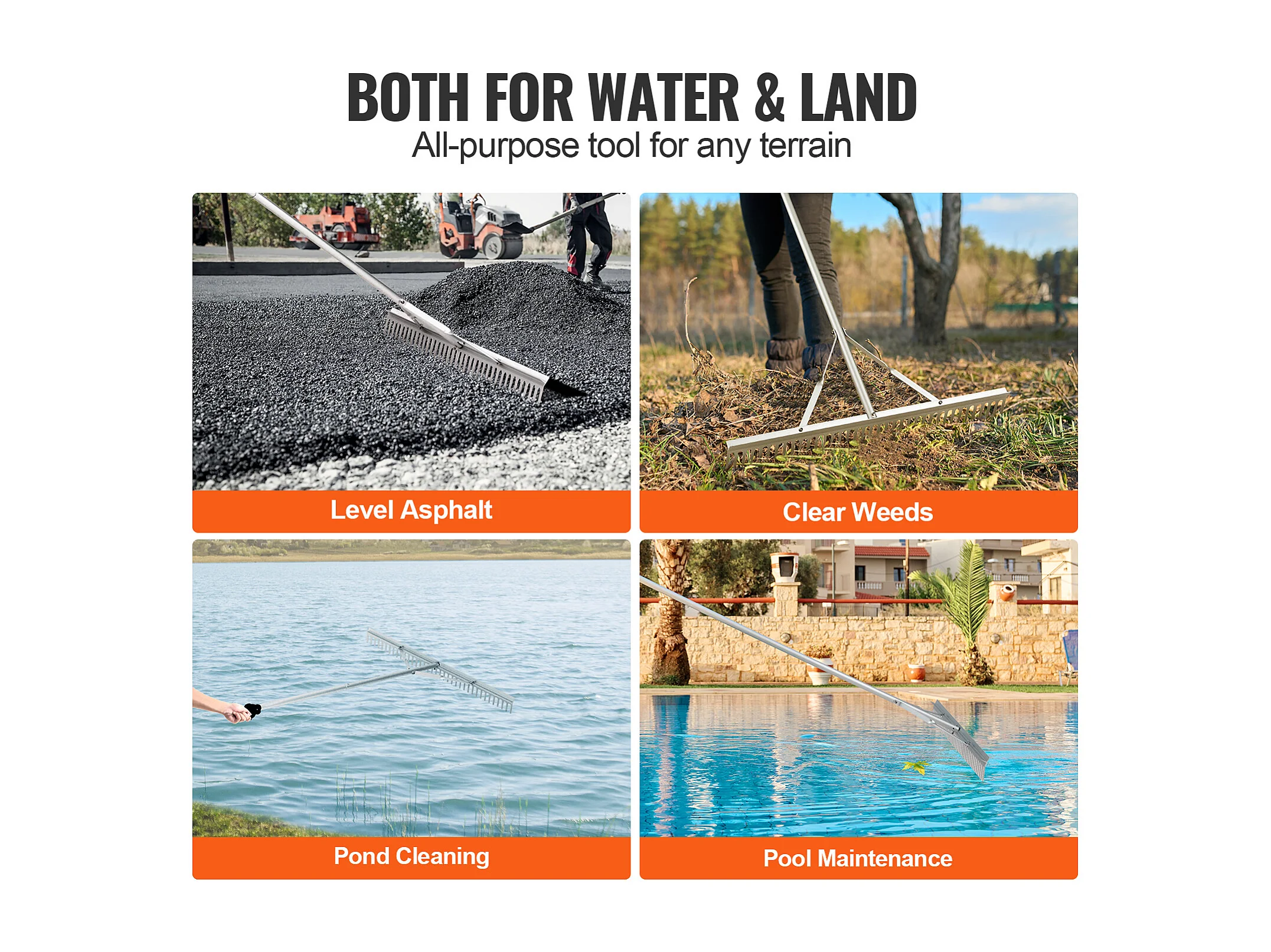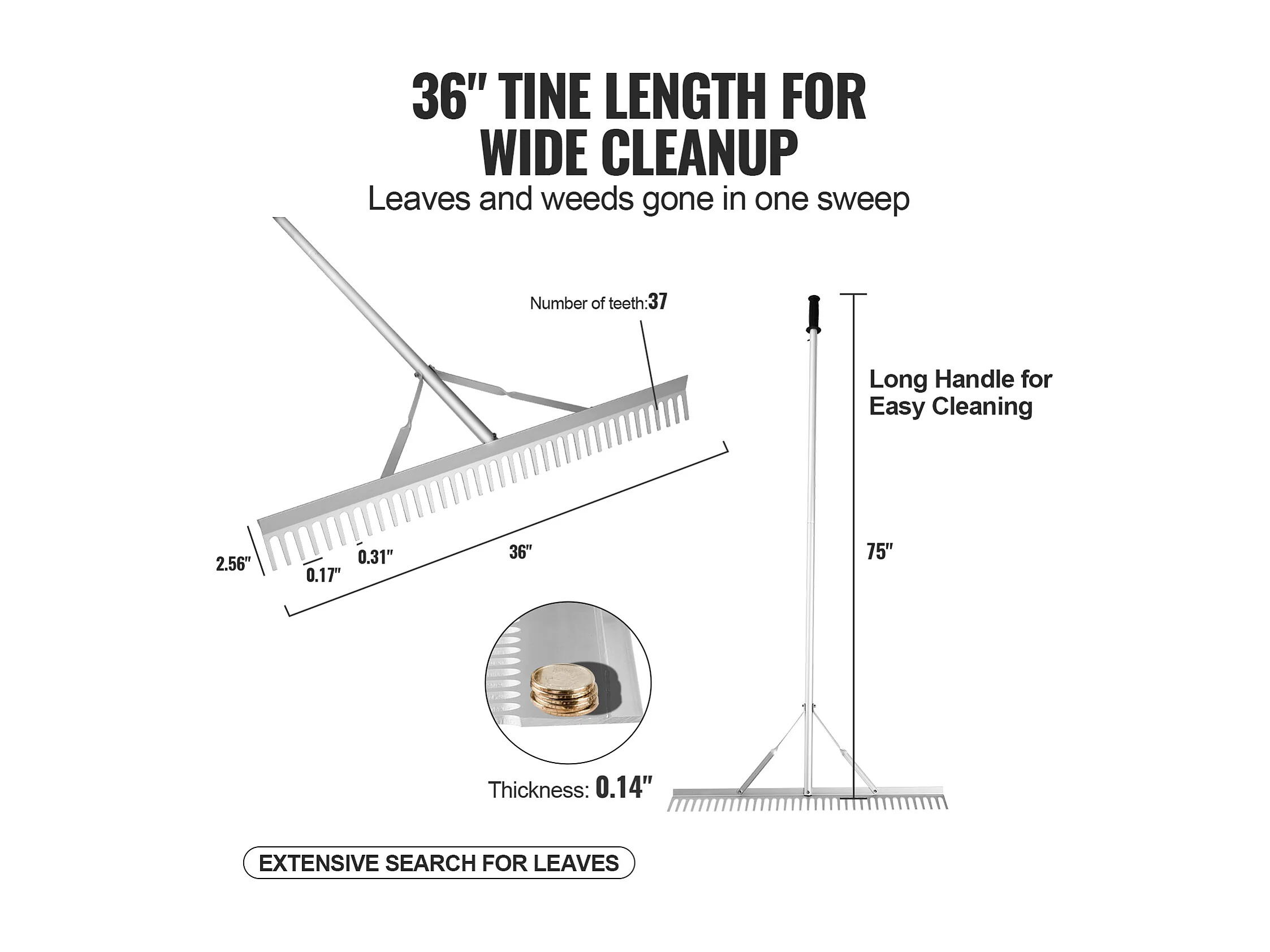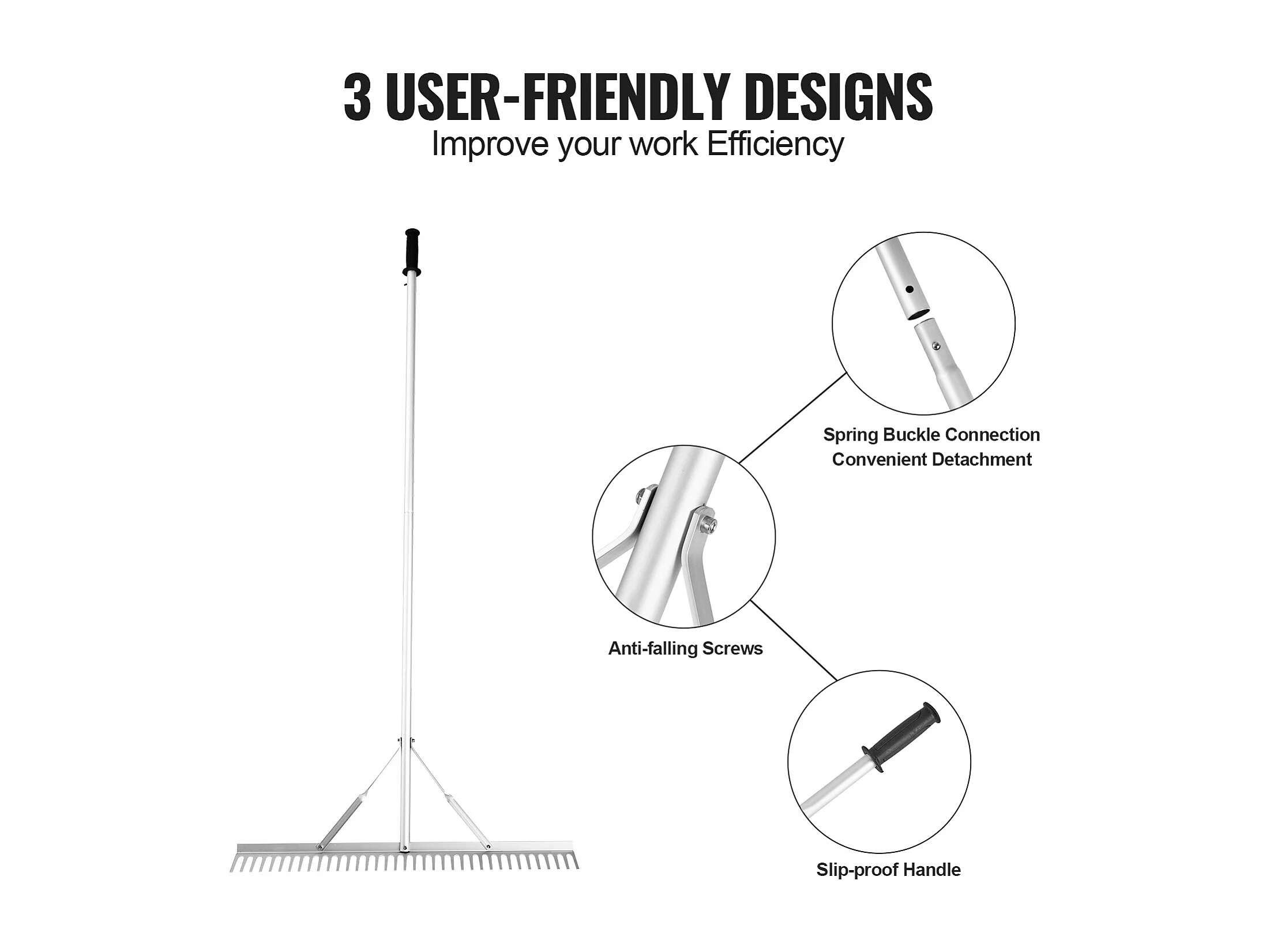 Râteau de Jardin, SucceBuy Râteau à Paysage de 91,5 cm, Tête en Aluminium avec Manche Réglable de 191,5 cm