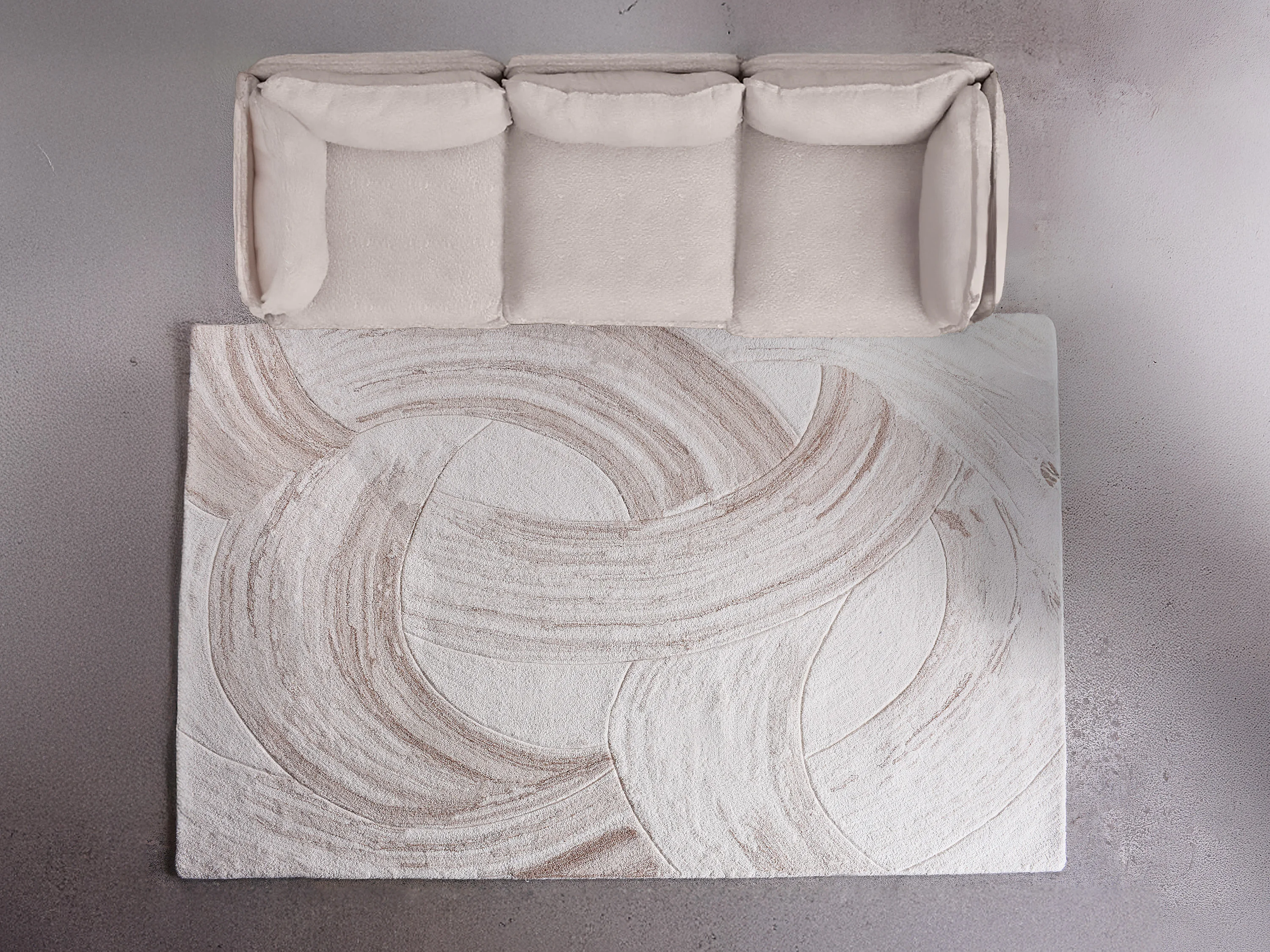 Tapis 100% laine tufté main motif abstrait - 160 x 230 cm - Ivoire et taupe - RAVELINO