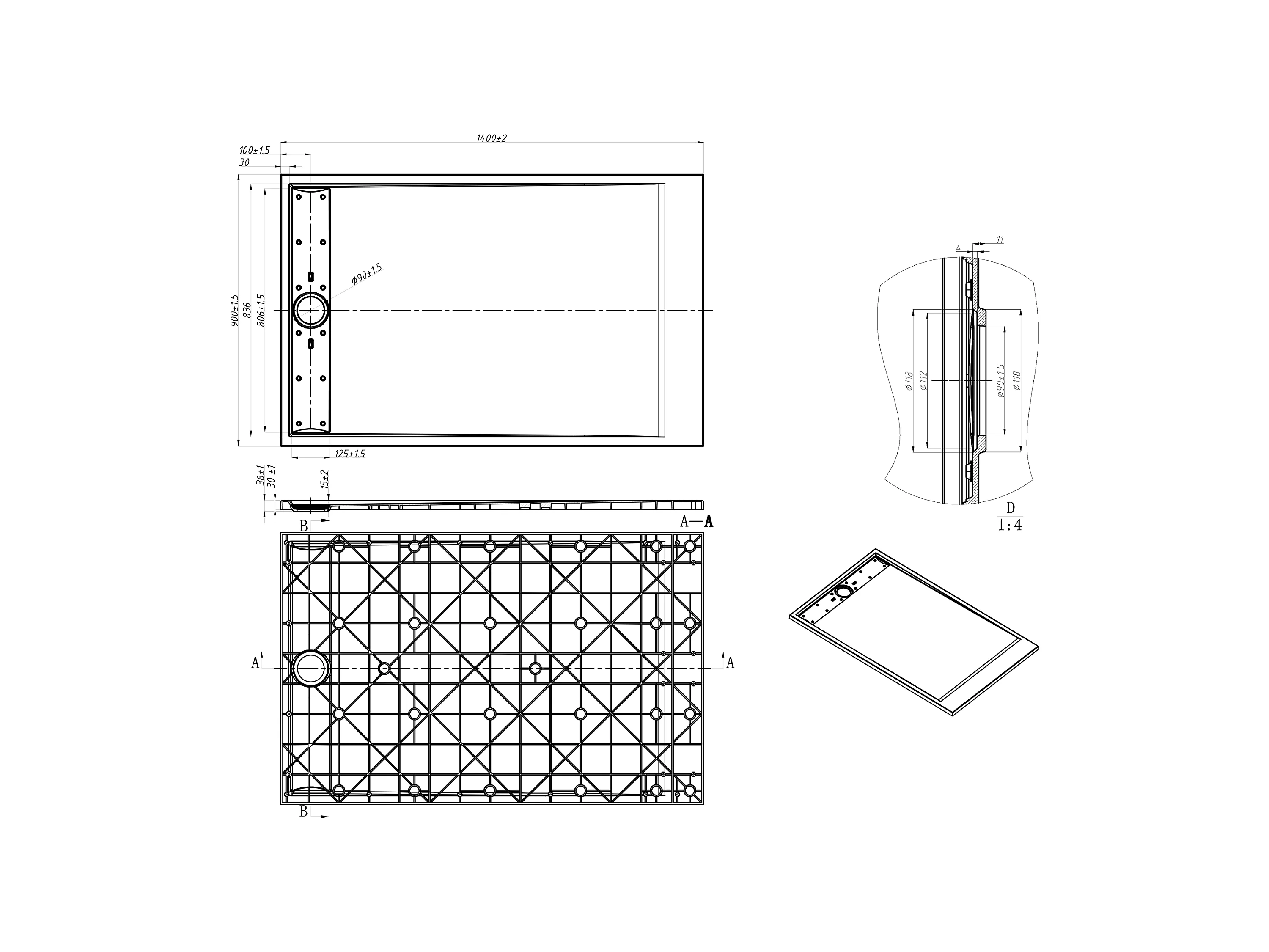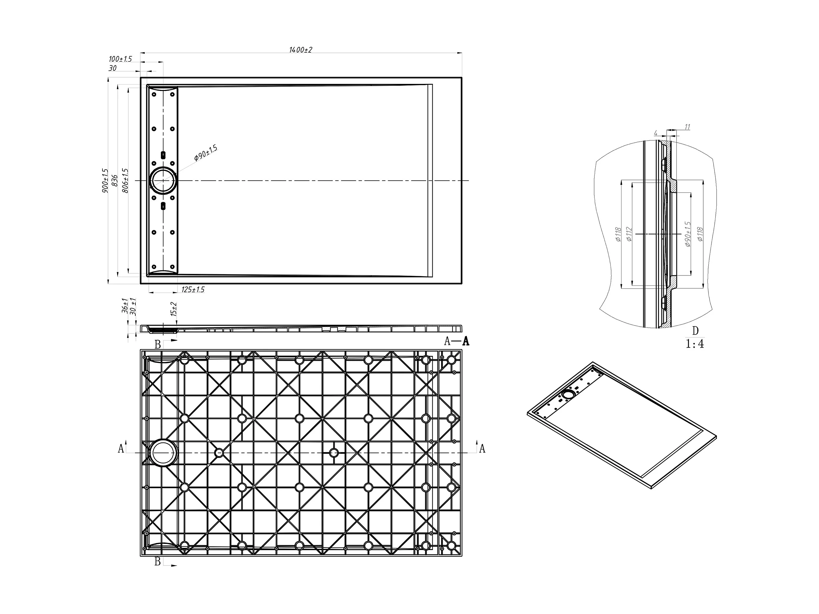 Receveur de douche extra plat à poser ou à encastrer recoupable en résine SMC - Noir - 140 x 90 cm - LYROSA