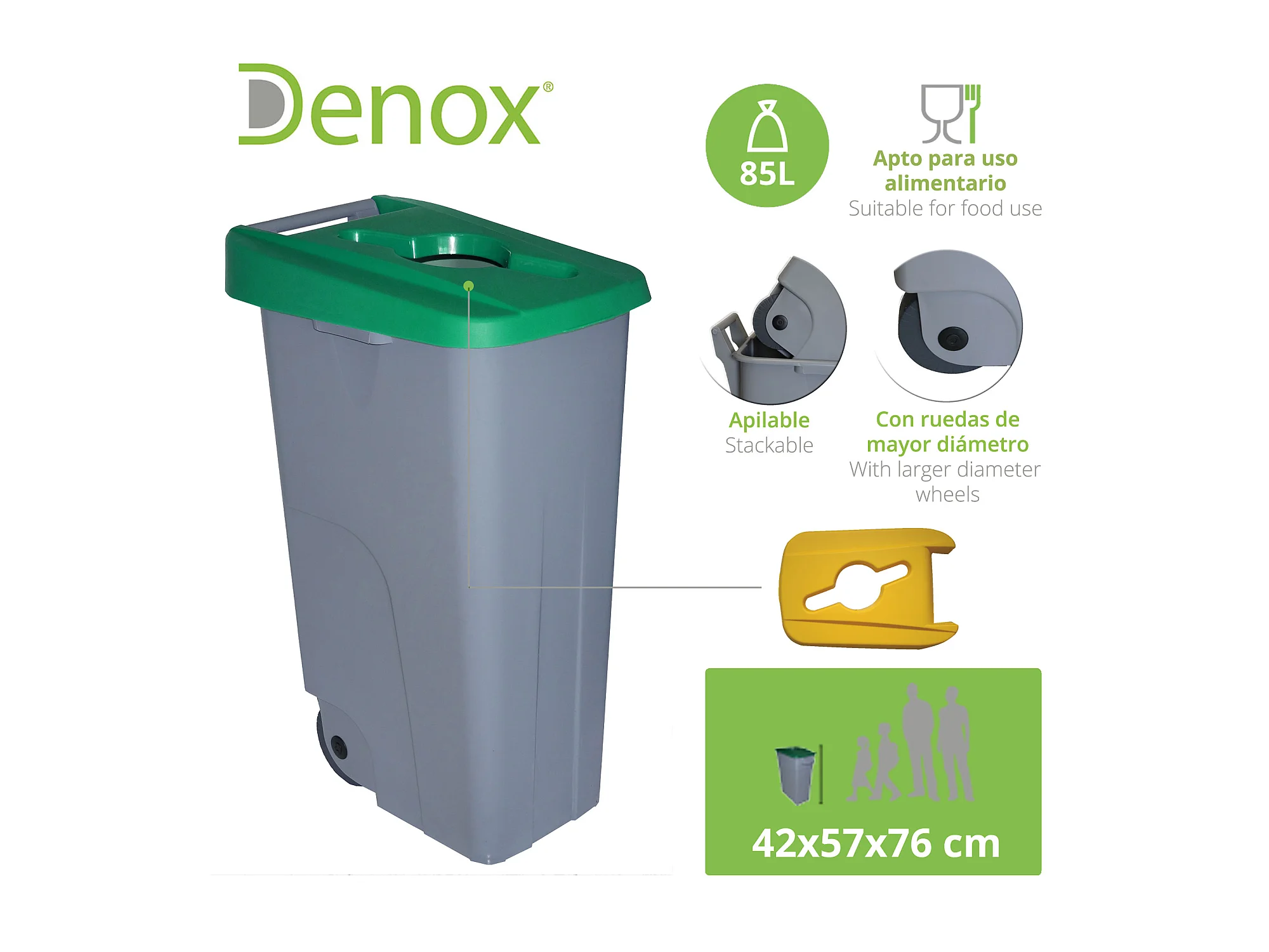 Recyclage Cube 45L Keden dans du plastique avec un couvercle ouvert vert. 39x39x65