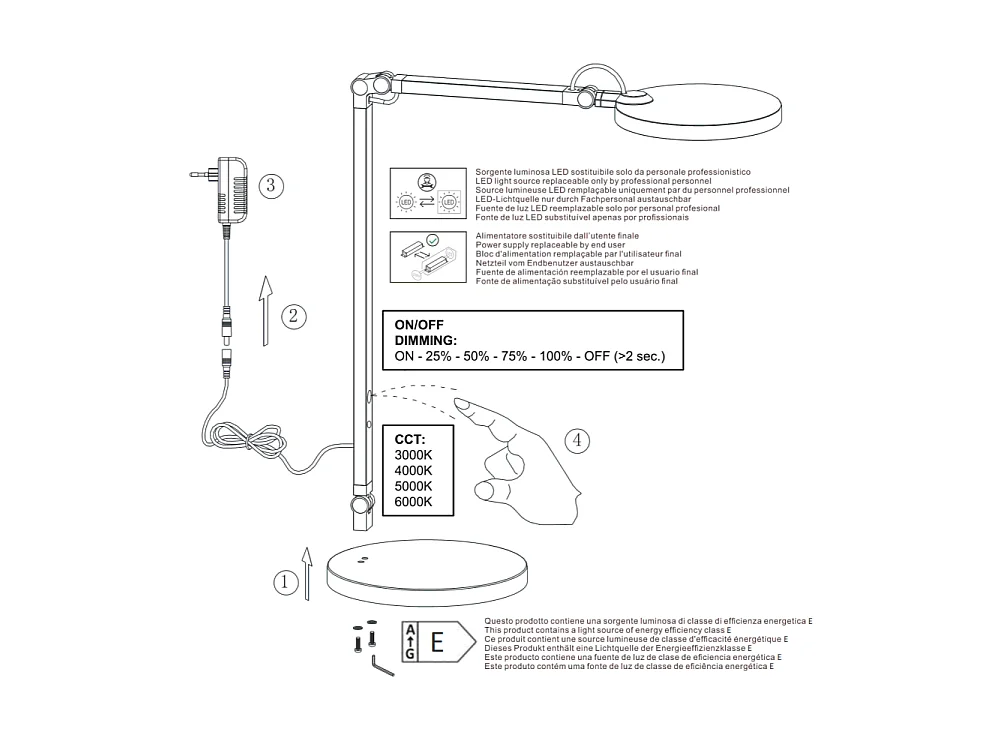 Regina - Lampe de table réglable Fabas Luce noire - LED tactile intégrée 9W à intensité variable CCT (3000K, 4000K, 5000K, 6000K)