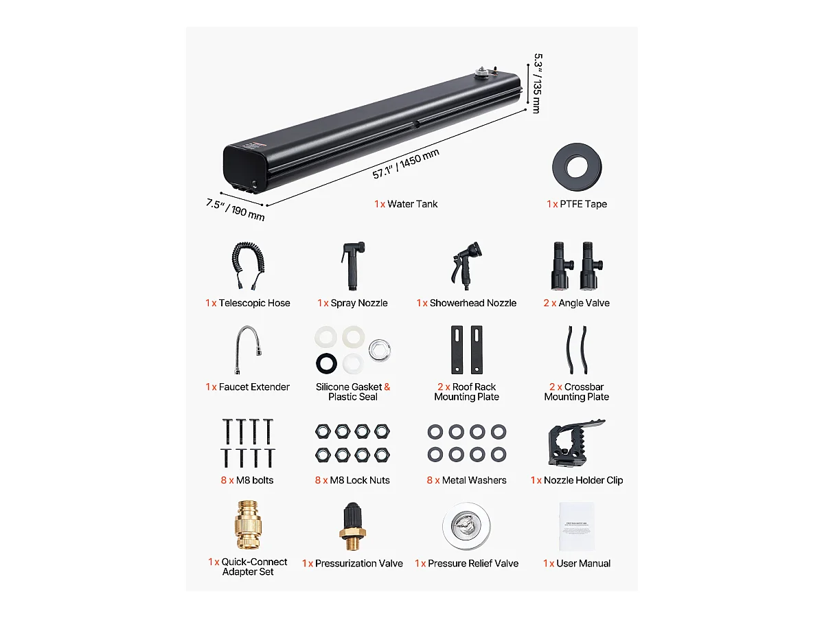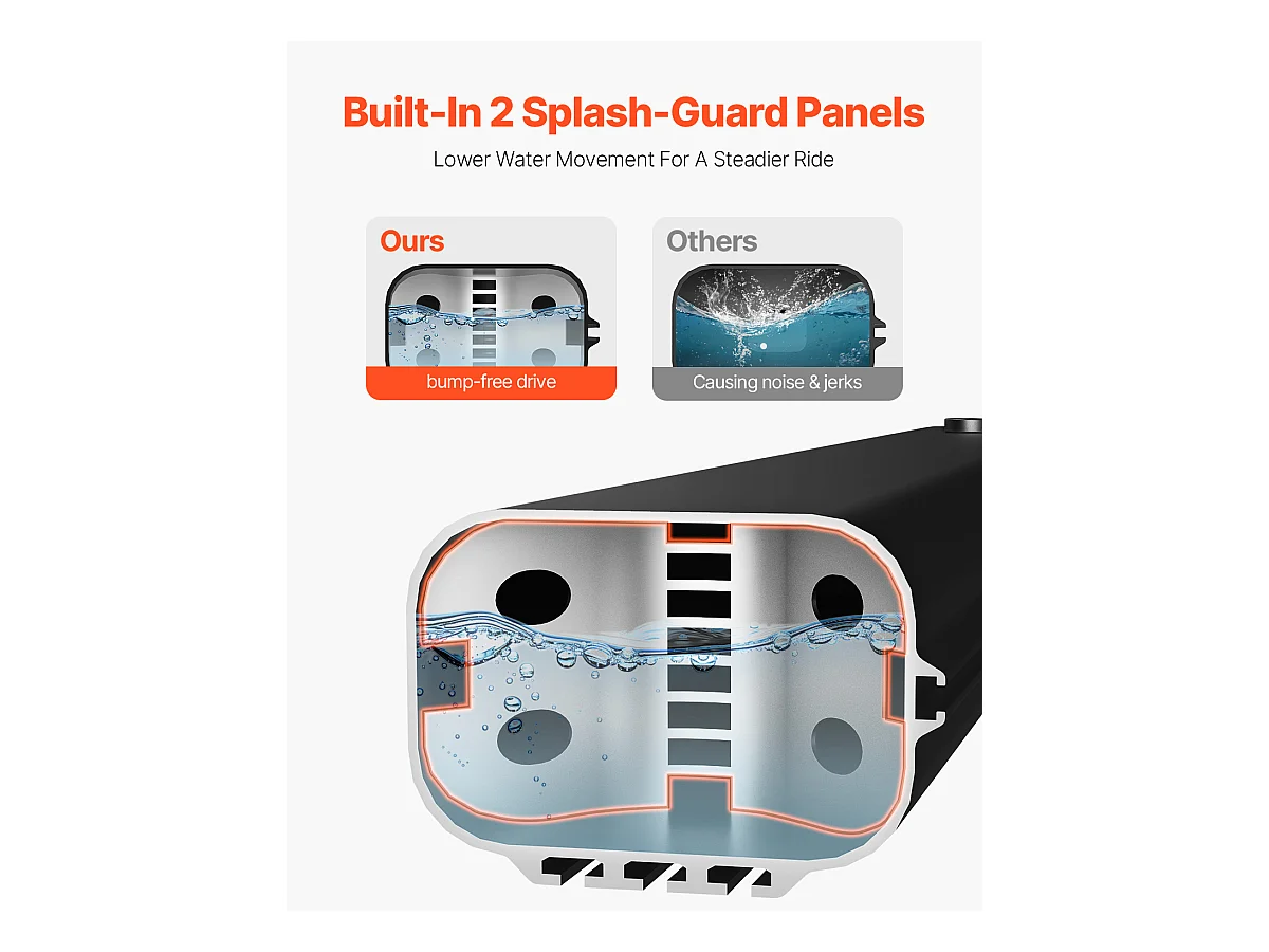 Réservoir d'eau de Toit SucceBuy de 26.5L, Réservoir en Aluminium Haute Capacité avec Port de Pressurisation, 2 Panneaux Anti-Éclaboussures et Fente en T
