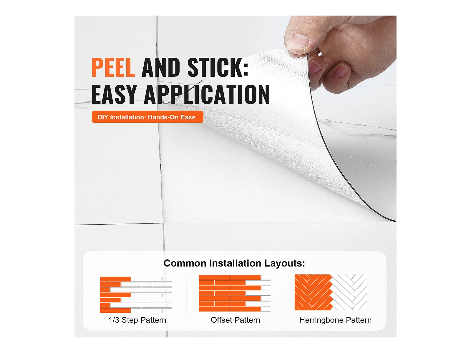 Revêtement de Sol SucceBuy en Vinyle Auto-adhésifs 82.55cm 1.5mm d'Épaisseur, à Décoller, Texture en Marbre Blanc pour la Décoration Intérieure