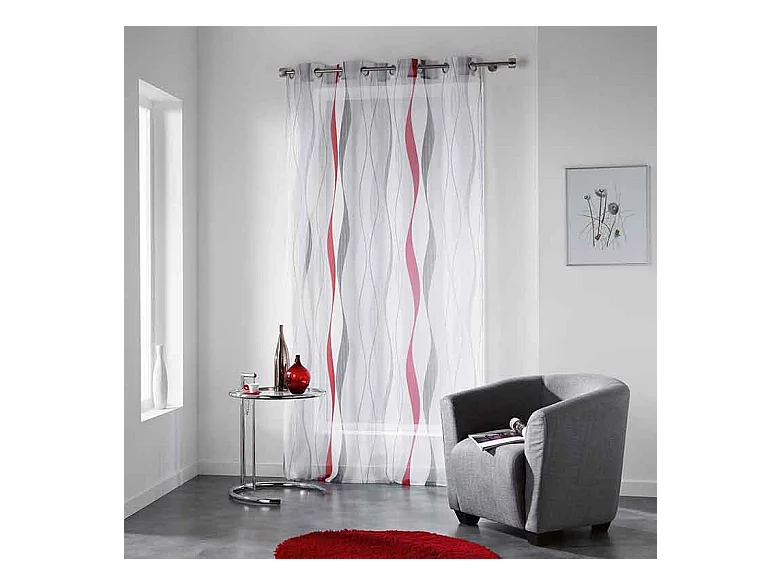Rideau Voilage Imprimé "Ondulys" 140x240cm Rouge
