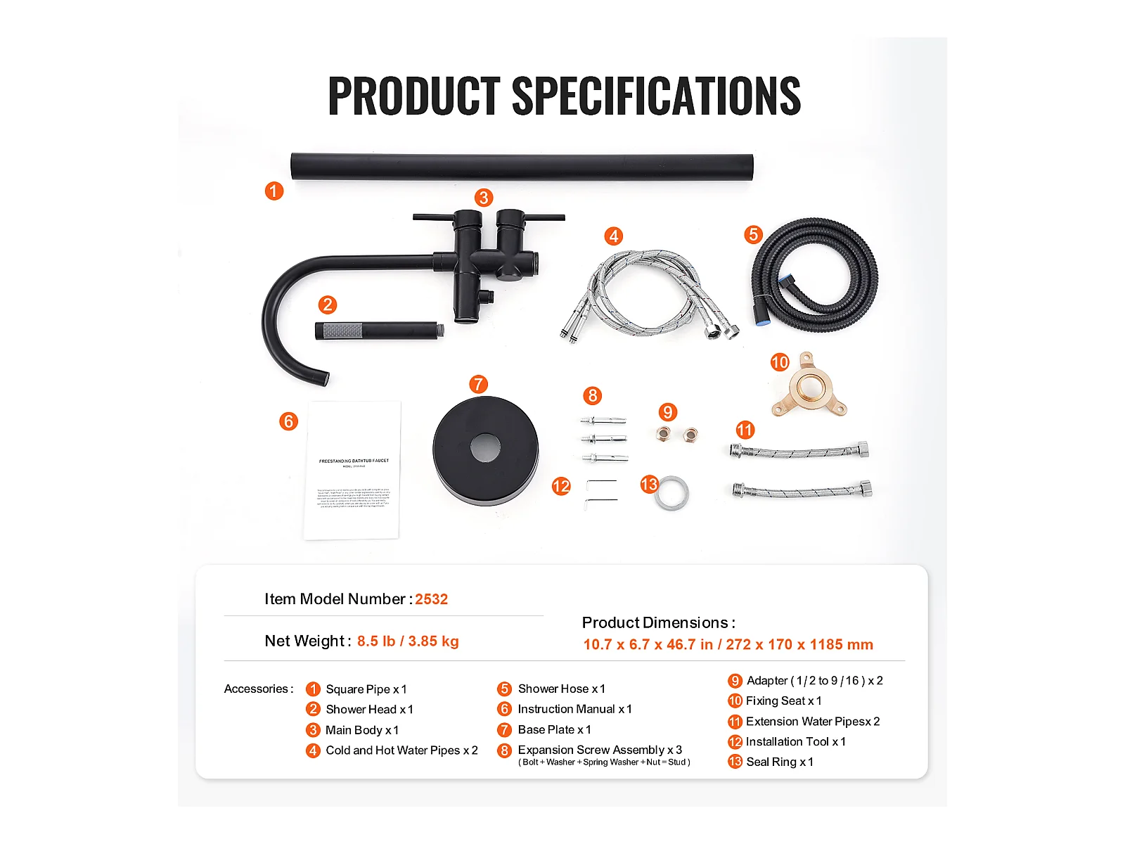 Ensemble Baignoire SucceBuy Robinet de Baignoire Autoportant, Montage au Sol, Pivotant à 360°, Deux Modes D'eau