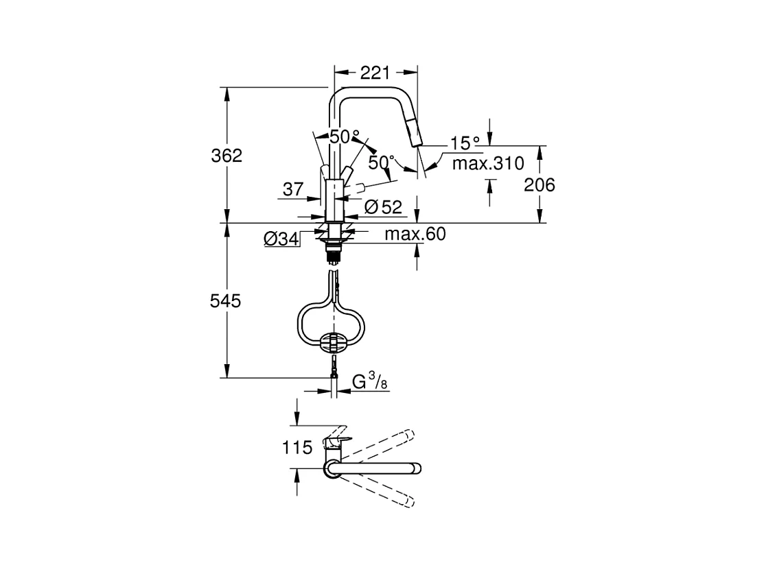 Robinet de cuisine avec douchette GROHE Start bec haut noir mat 2 jets
