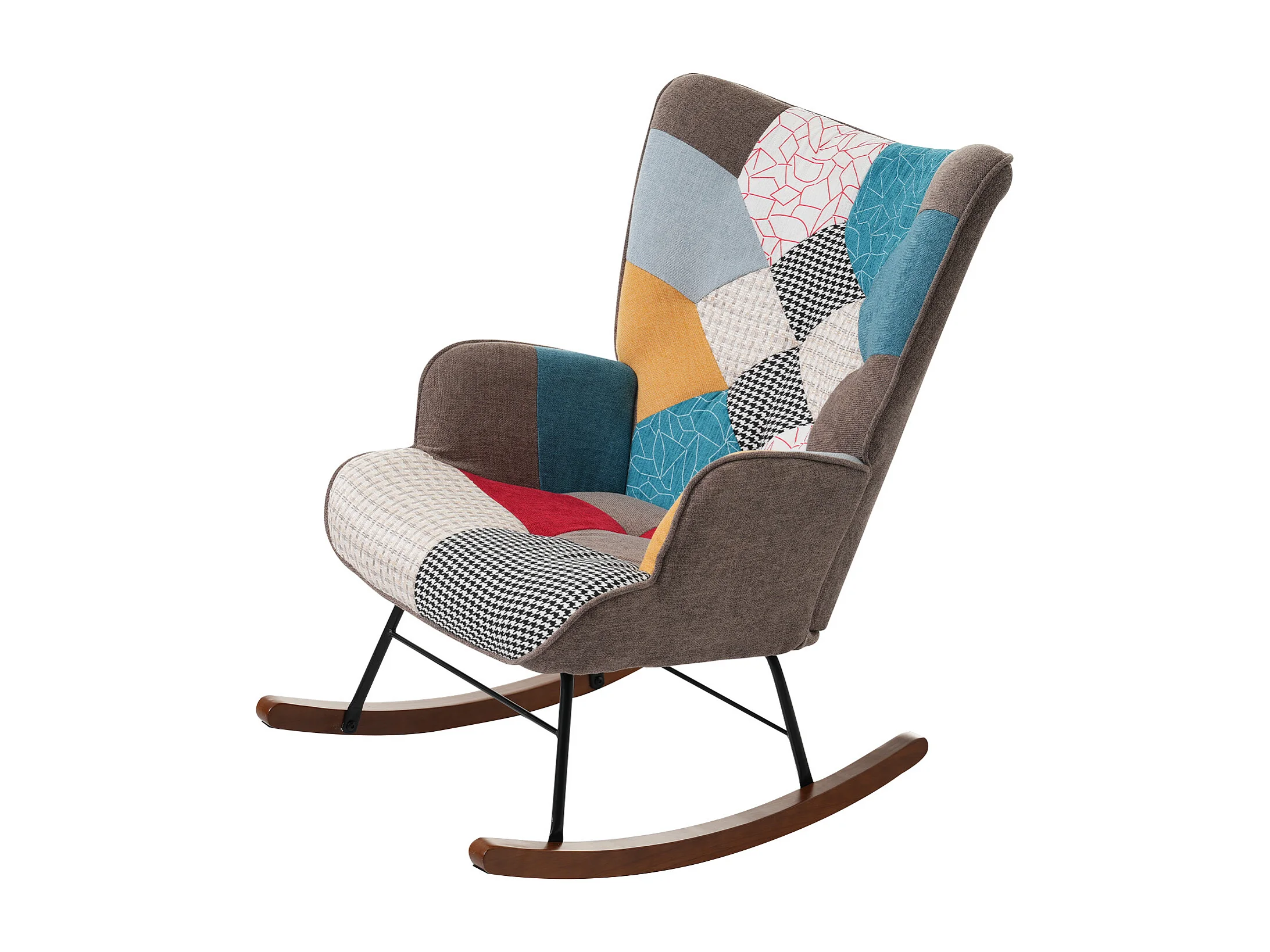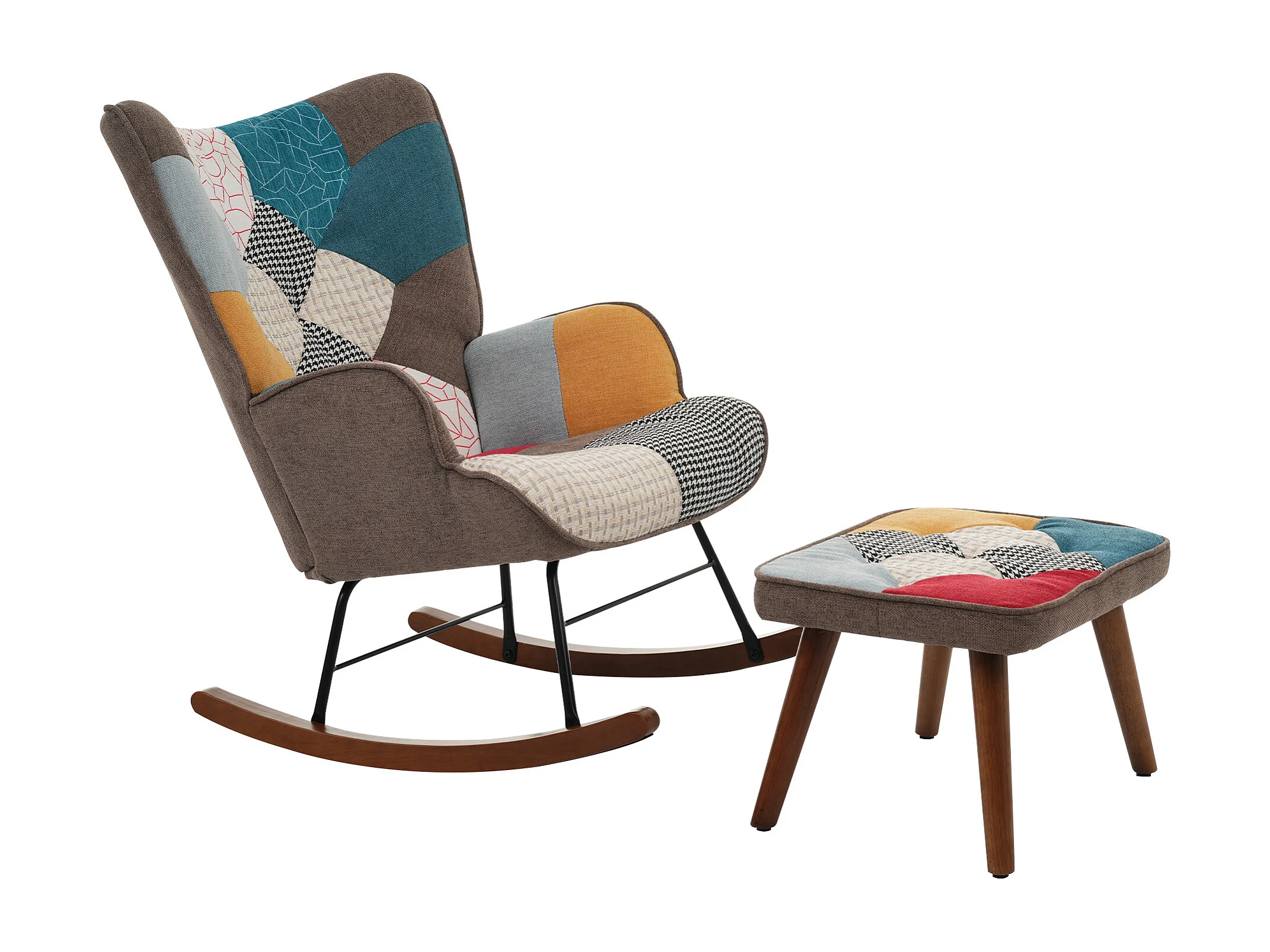 Rocking chair avec repose-pieds, dossier haut, appui-tête et coussin lombaire peluche, multicolore