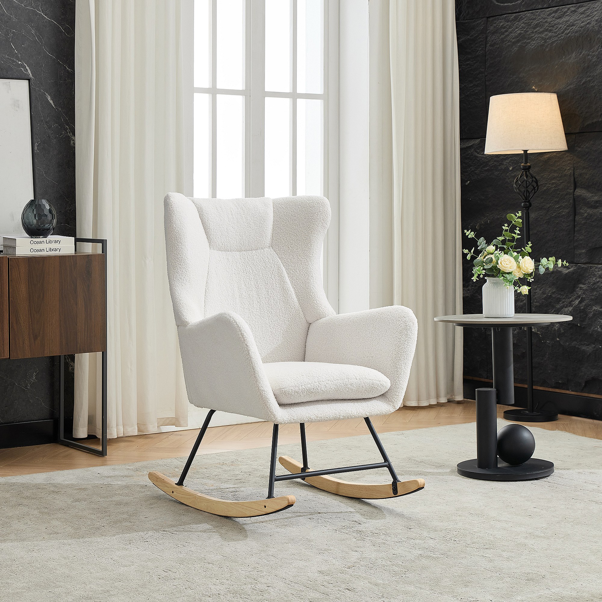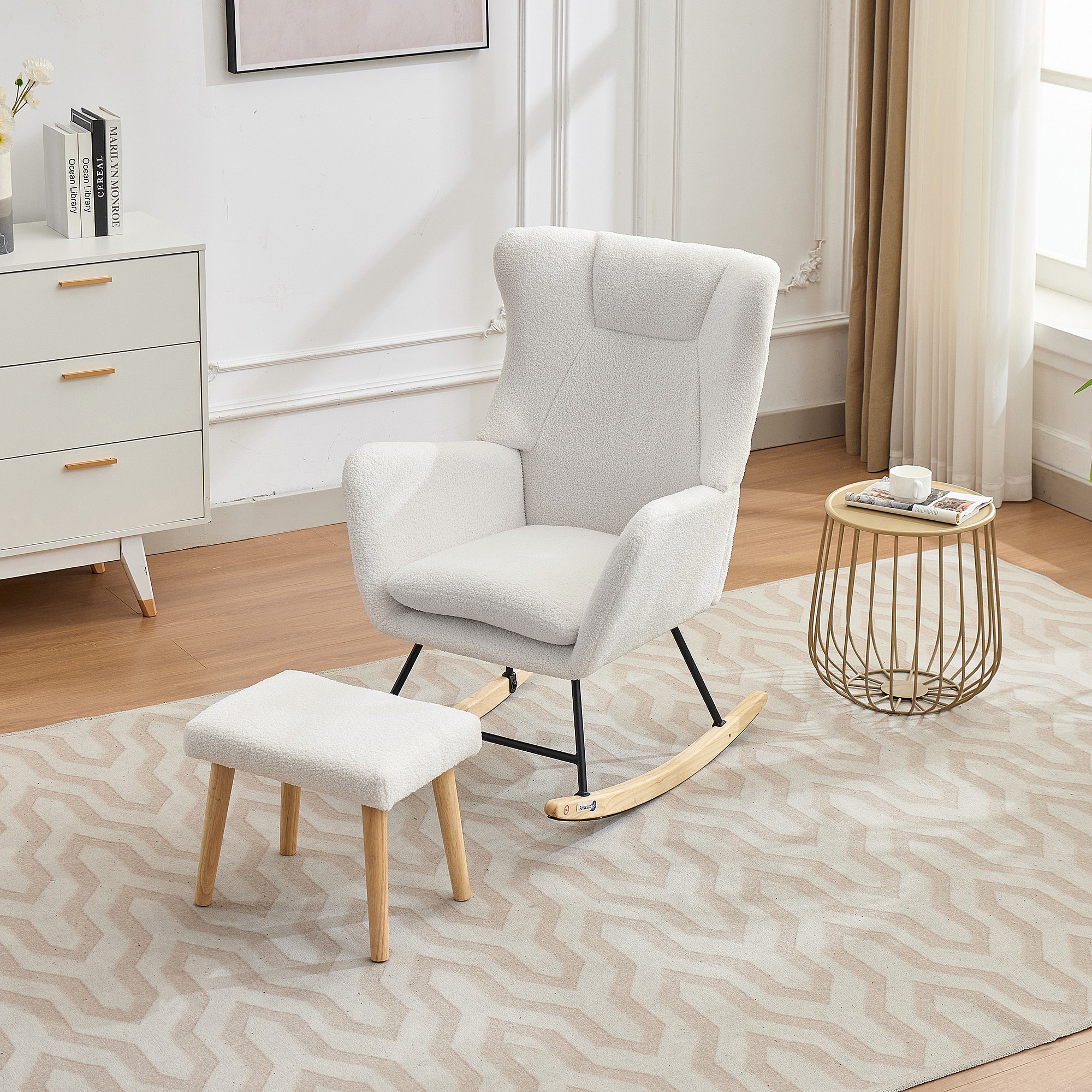 Rocking chair rembourré ergonomique avec repose-pieds + dossier haut - 62 x 82 x 87 cm - velours - blanc