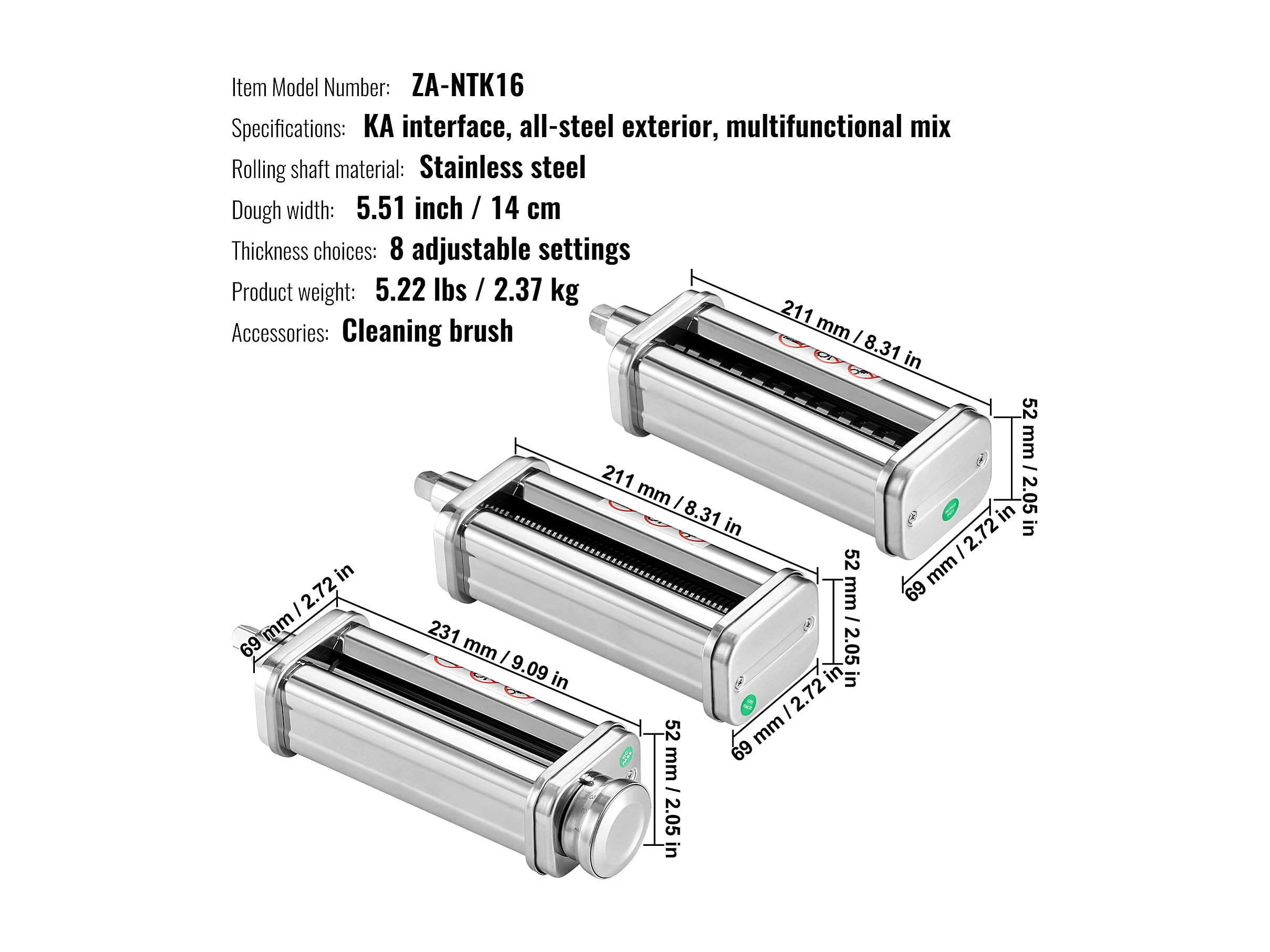 Rouleau à Pâtes SucceBuy Lot de 3 Accessoires pour Pâtes pour Mixeur KitchenAid Ensemble de Coupe-pâtes à Rouleaux