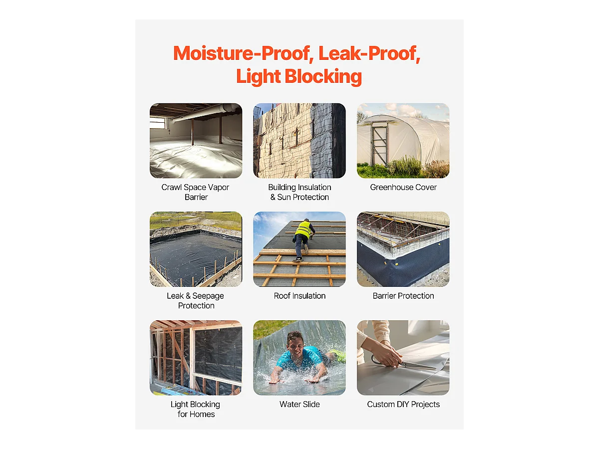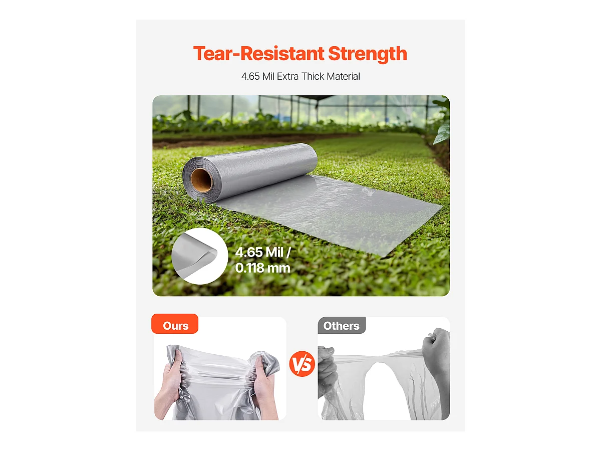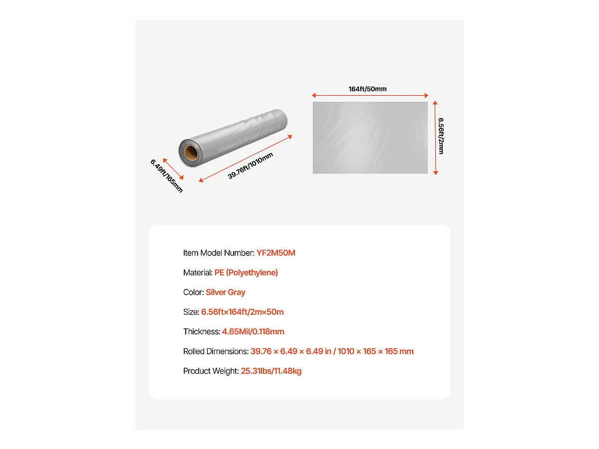 Rouleau de Feuille de Plastique SucceBuy 8 Mil 2 x 50 m en Polyéthylène Robuste Gris