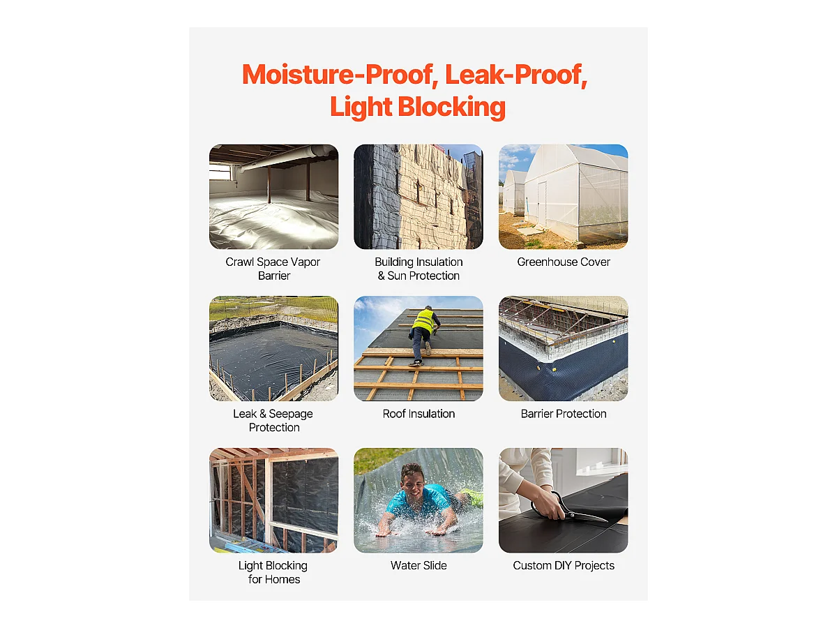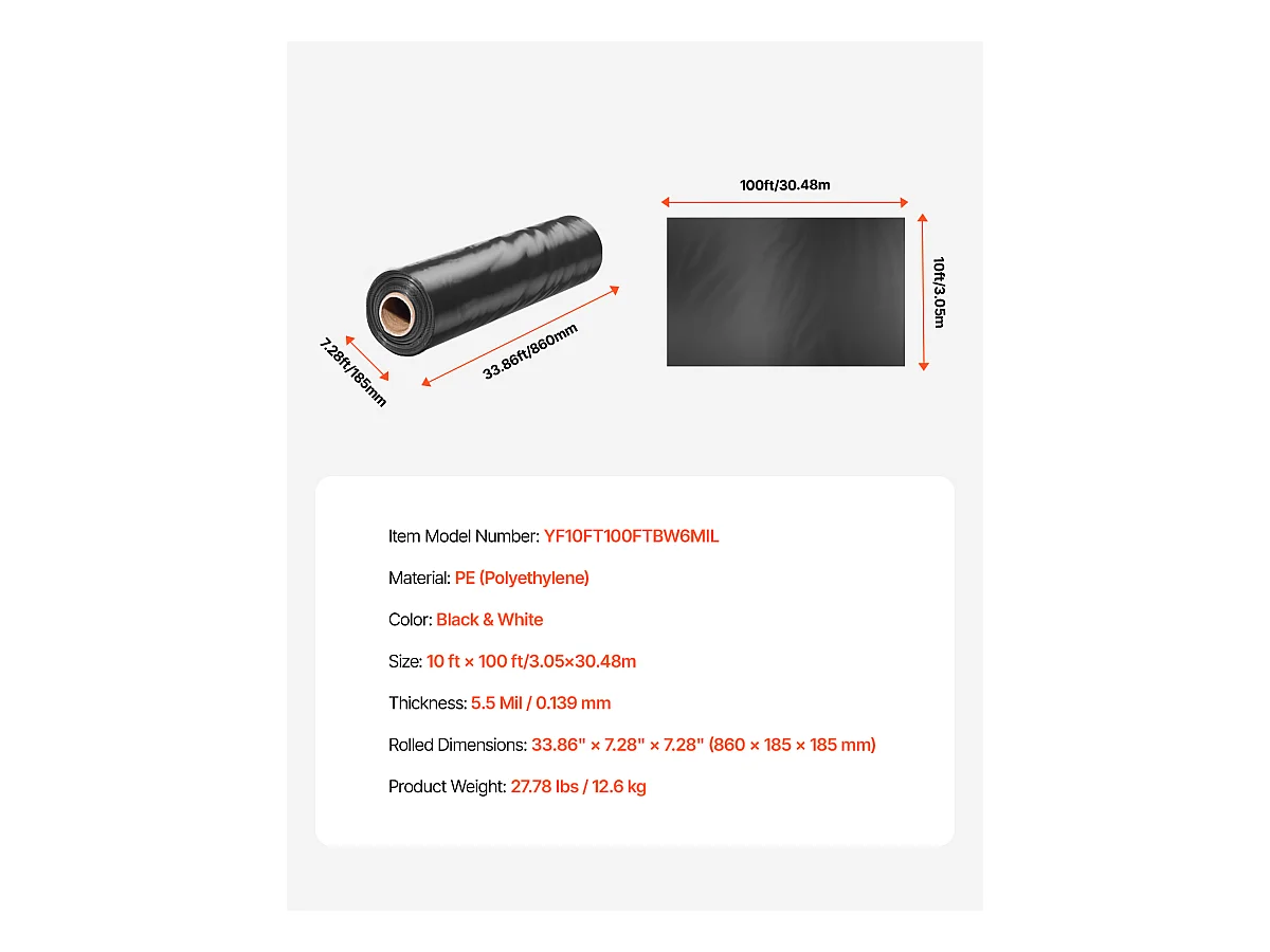 Rouleau de Film Plastique Robuste SucceBuy 6 Mil,3.05 × 30.48 m, Film Double Face Noir et Blanc