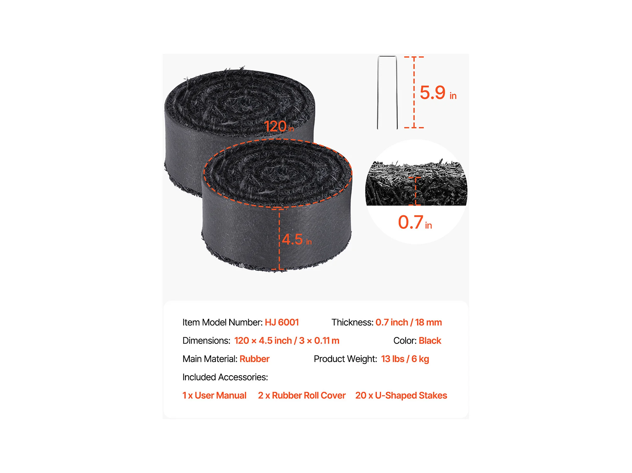 Rouleaux de Paillis SucceBuy 2 en Caoutchouc 305 x 11cm, Tapis Recyclé, Noir Naturel, Embellit les Jardins, Prévient les Mauvaises Herbes et la Boue