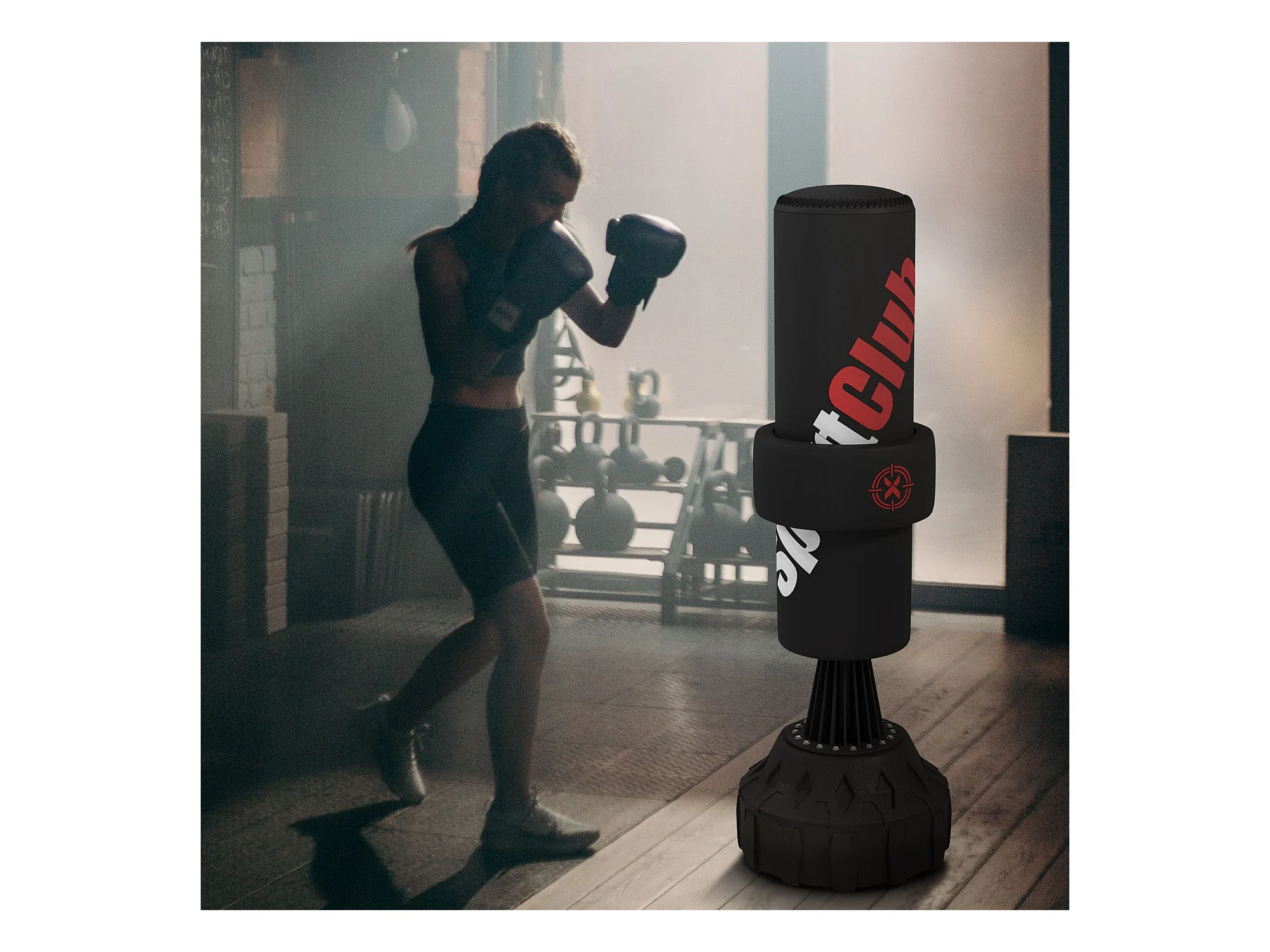 Sac de frappe boxe autoportant punching ball brunier 3 en 1 revêtement synthétique dim. 88L x 50l x 160-230H cm noir