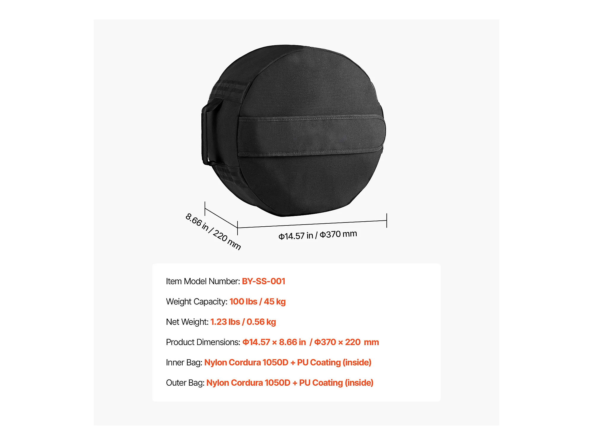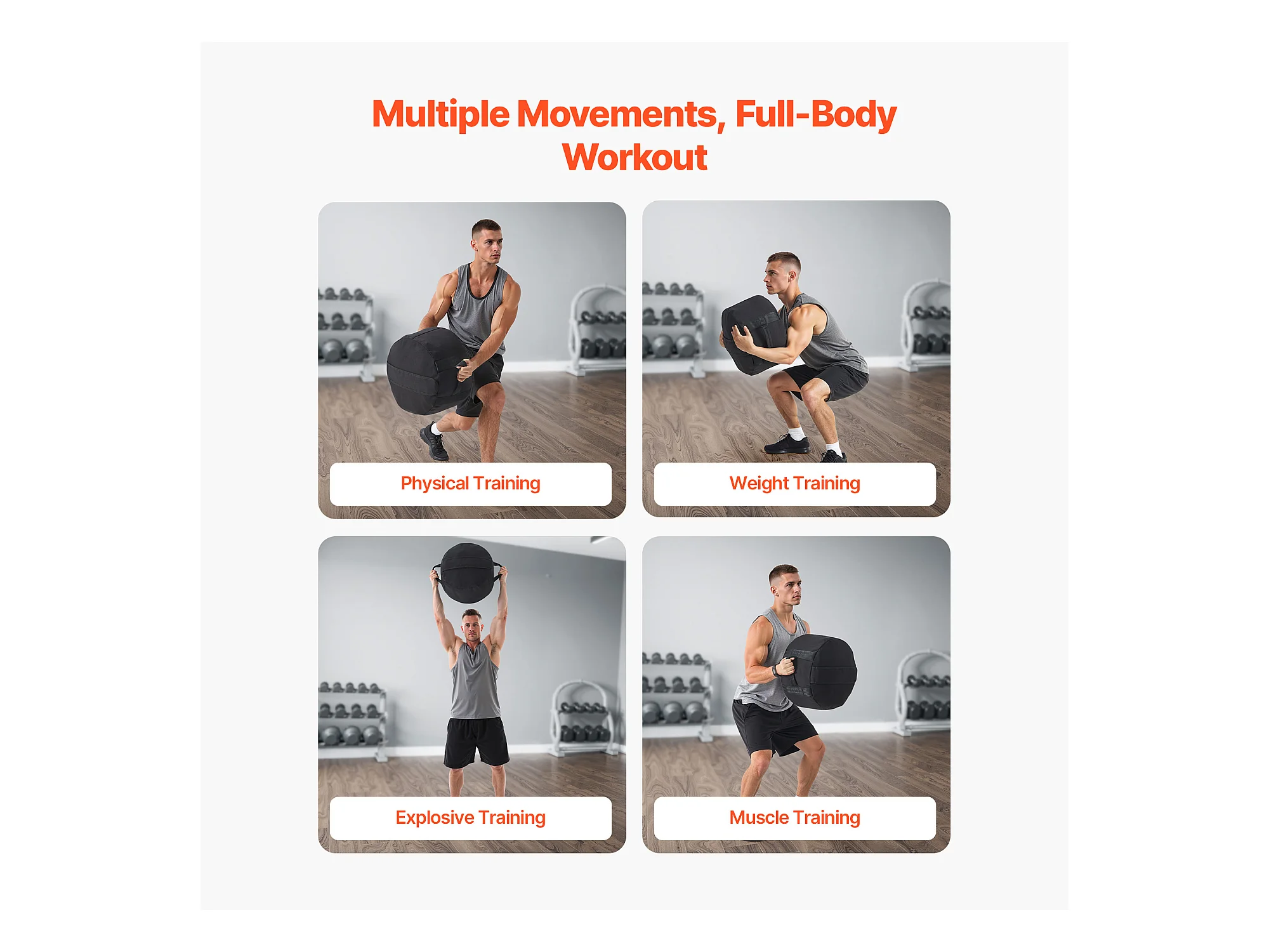 Sac de Sable Musculation SucceBuy 45 kg, Sac de Sport Fitness Vide Non Rempli, en Nylon et PU, avec Poignées Solides, Imperméable, Noir