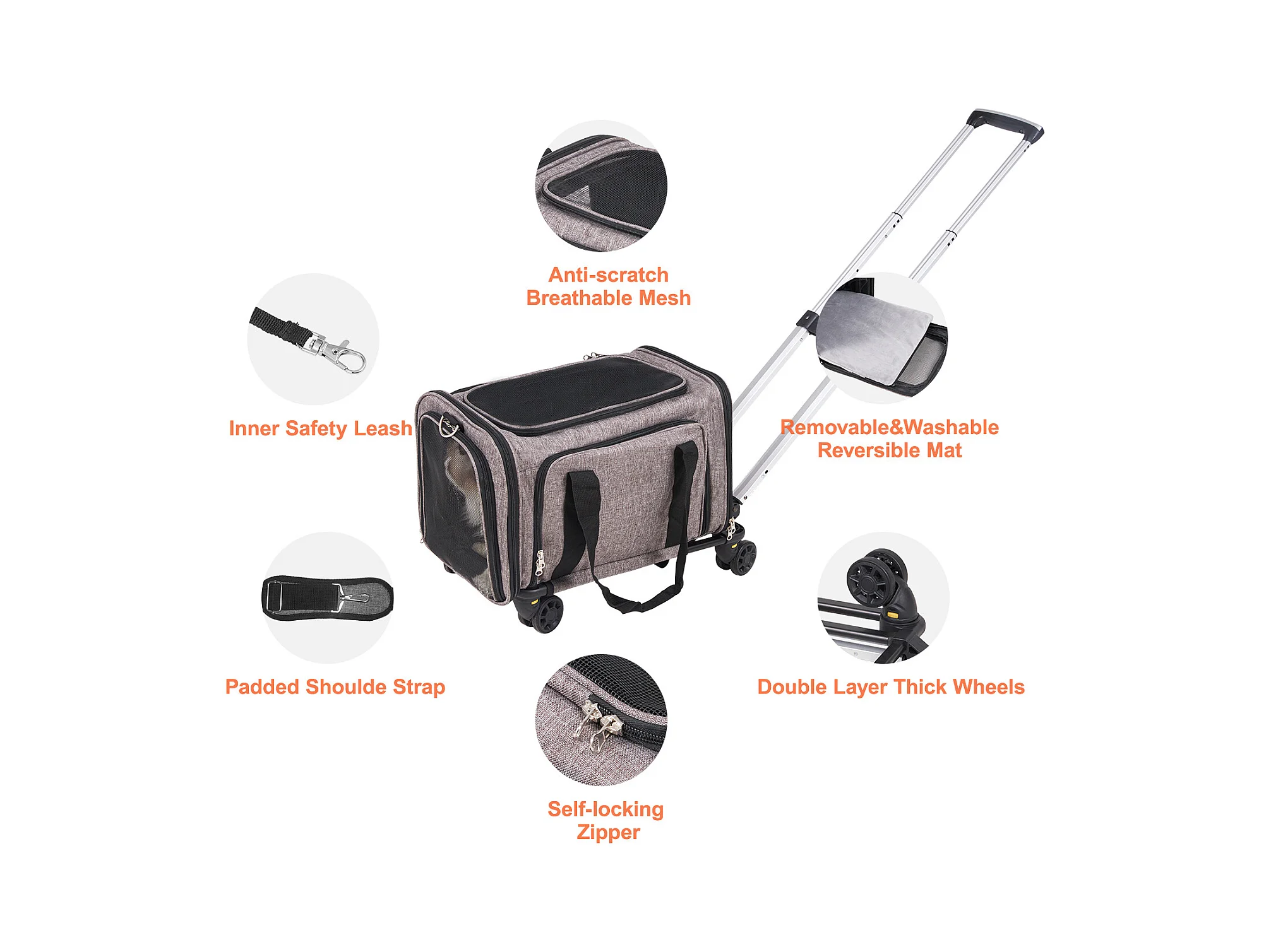 Sac de Transport pour Chat SucceBuy avec Roulettes, pour Animaux de Compagnie de Moins de 11.3 kg, 1 Bol Pliable Inclus, Gris