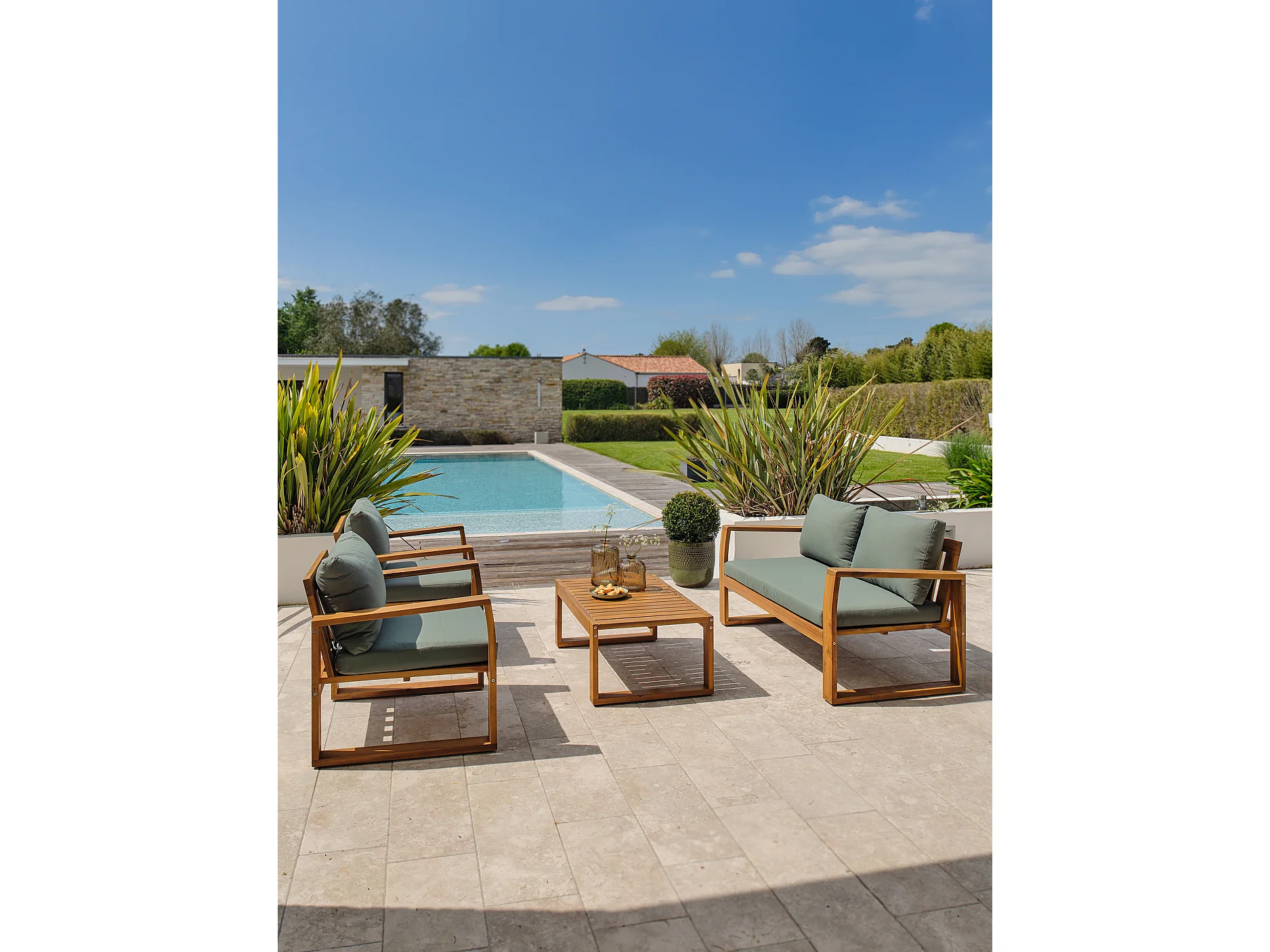 Salon bas de jardin 4 places en bois d'acacia