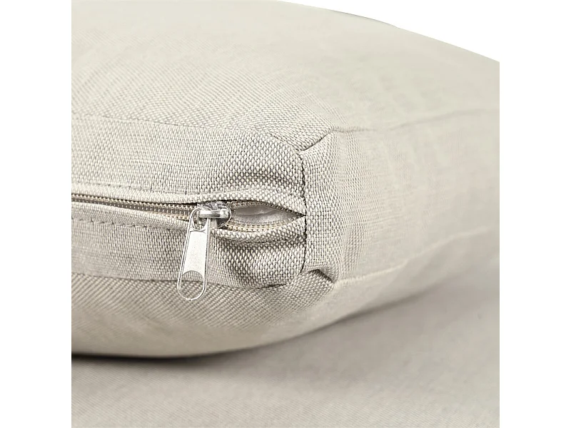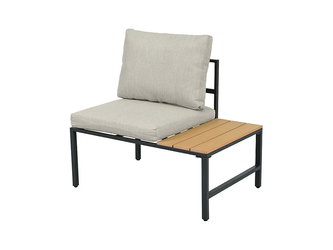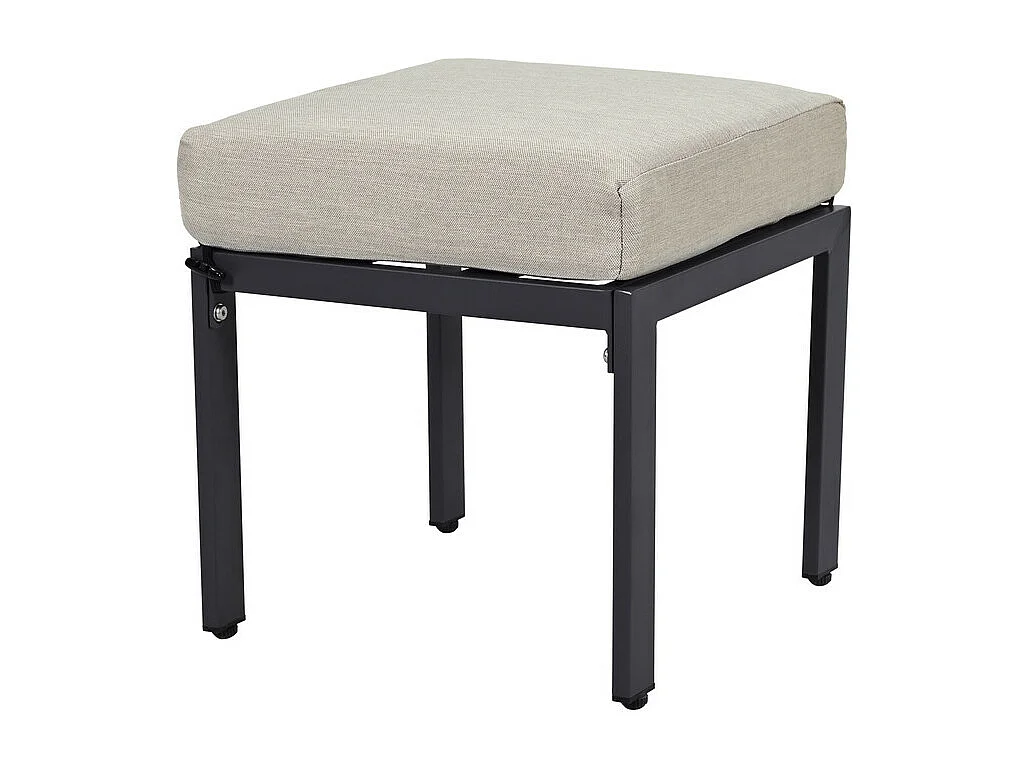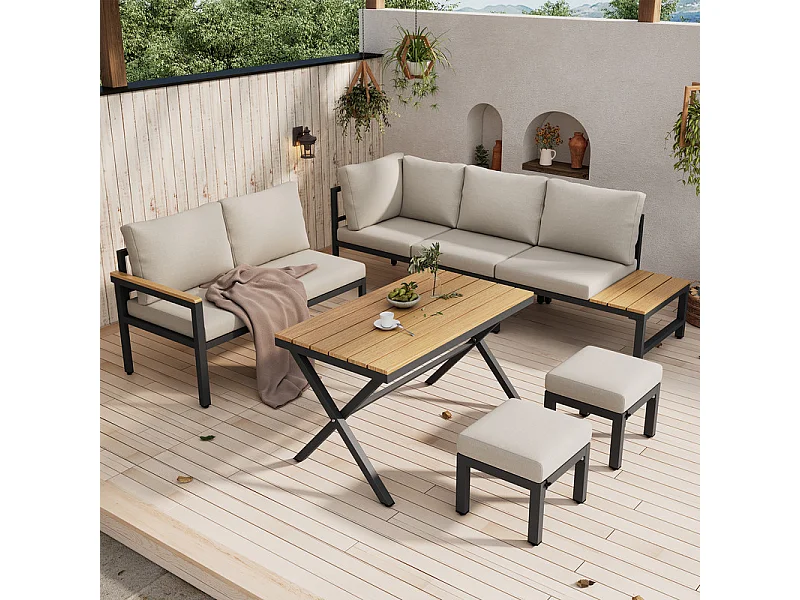 Salon d'angle de jardin en métal : 2 pouf, canapé d'angle et table basse - coussins beige