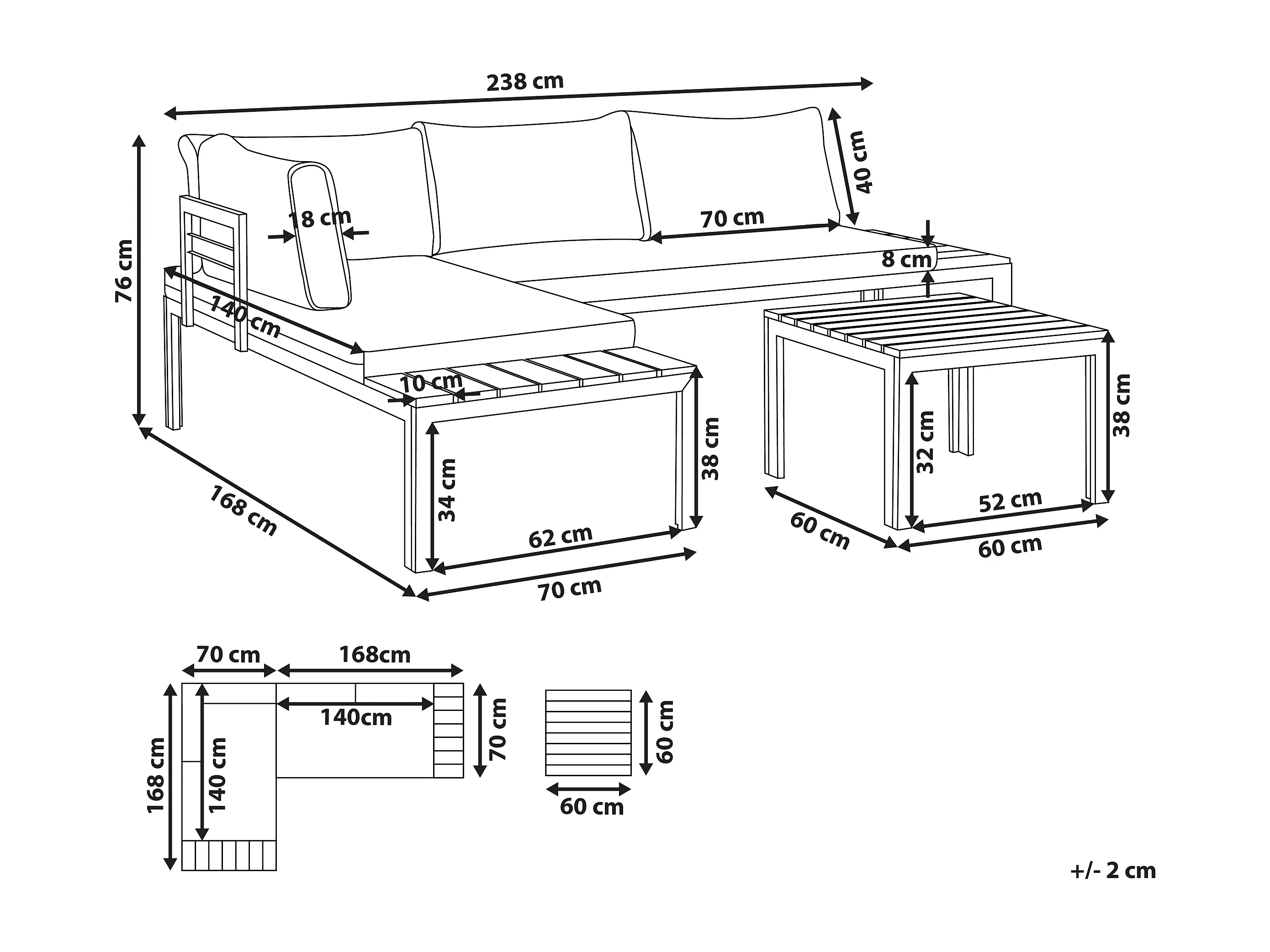 Ensemble de canapés d'angle de jardin 4 places PIENZA II Côté droit Gris
