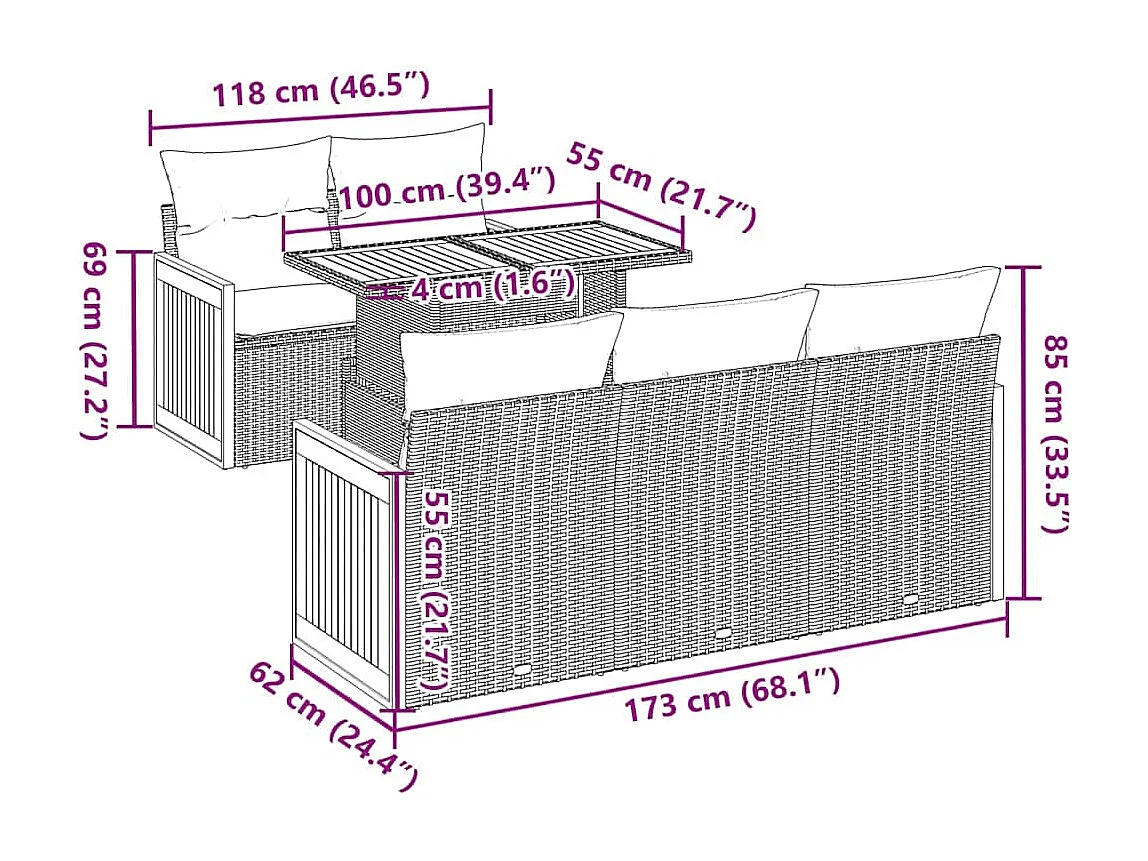 Salon de jardin 6 pcs avec coussins beige résine tressée acacia