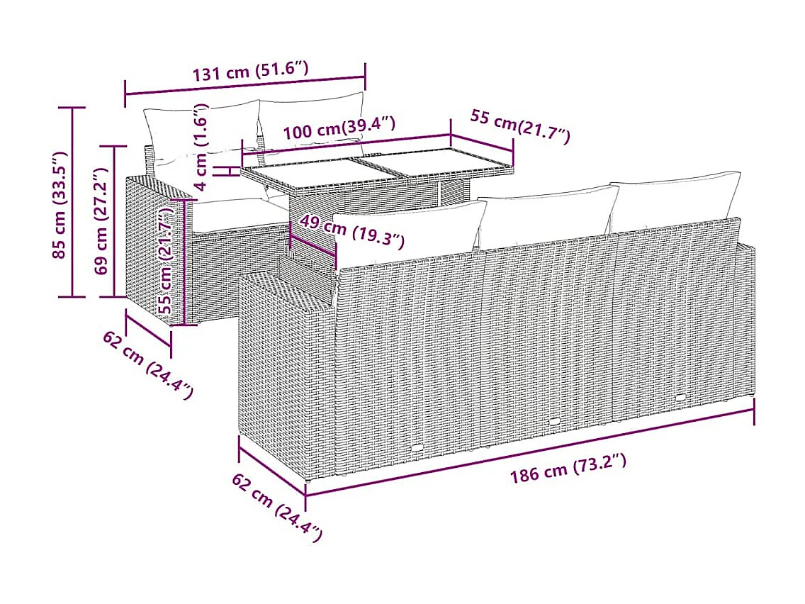 Salon de jardin 6 pcs avec coussins gris résine tressée