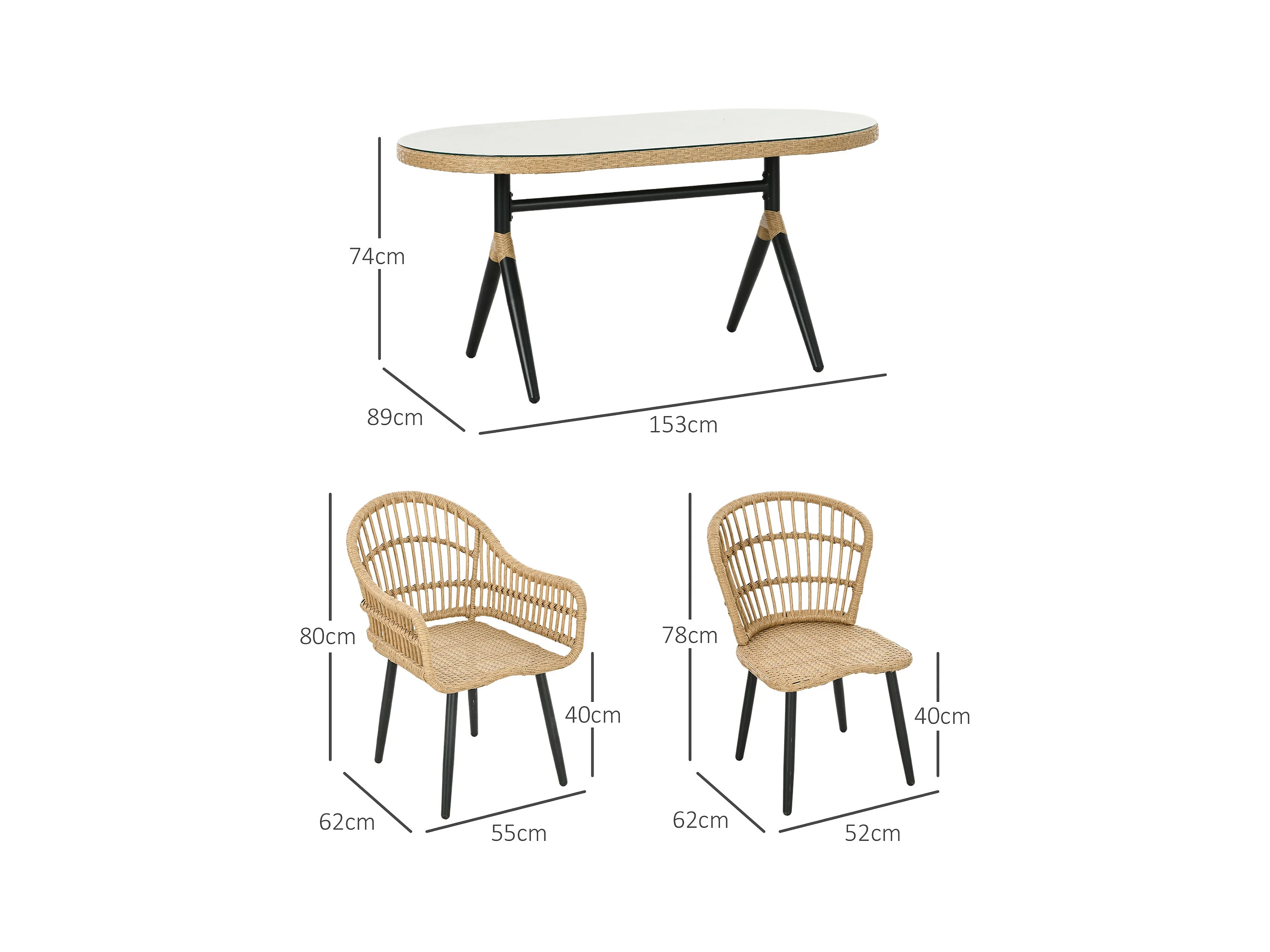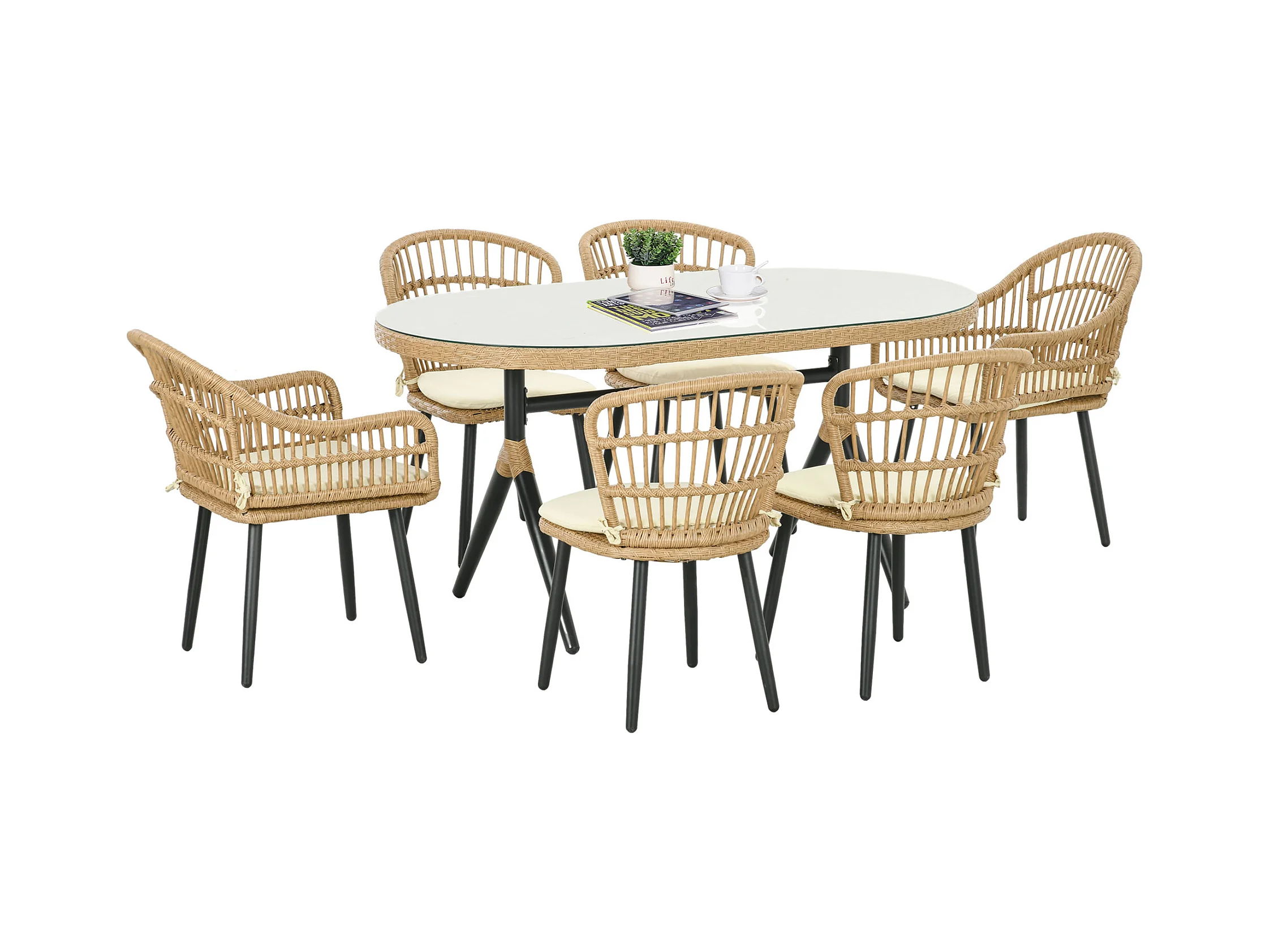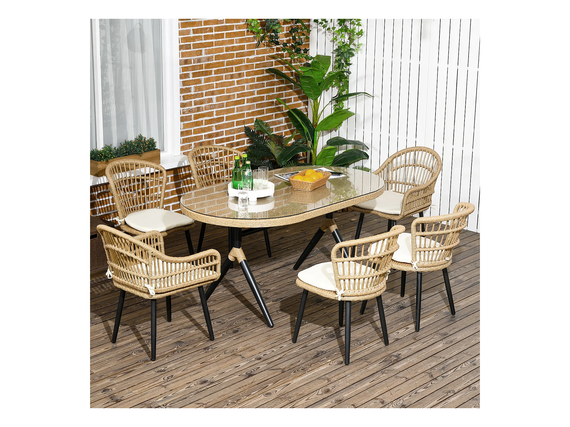 Salon de Jardin 6 places 7 pièces style bohème - 6 chaises, table à manger ovale - coussins inclus