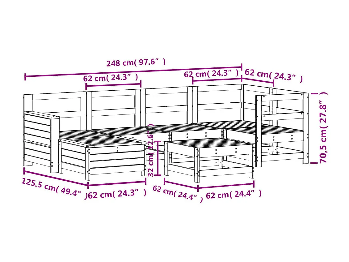Salon de jardin 6 pcs blanc bois de pin massif