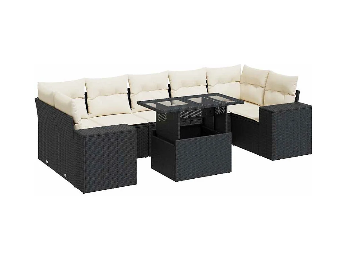 Salon de jardin 8 pcs avec coussins noir résine tressée