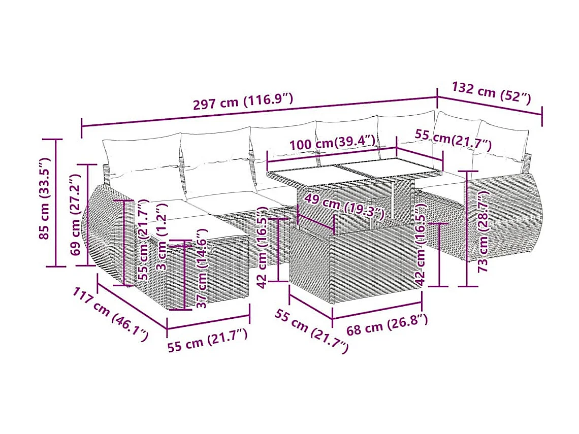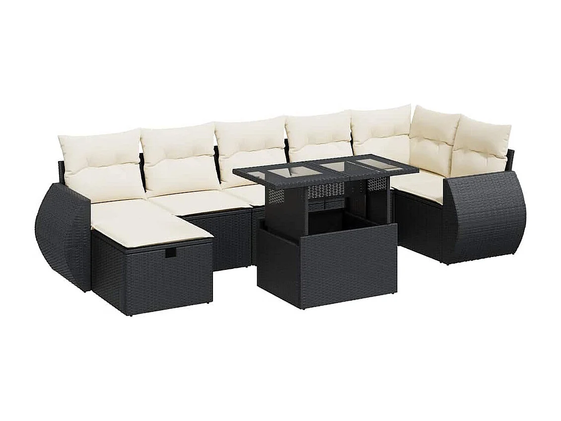 Salon de jardin 8 pcs avec coussins noir résine tressée