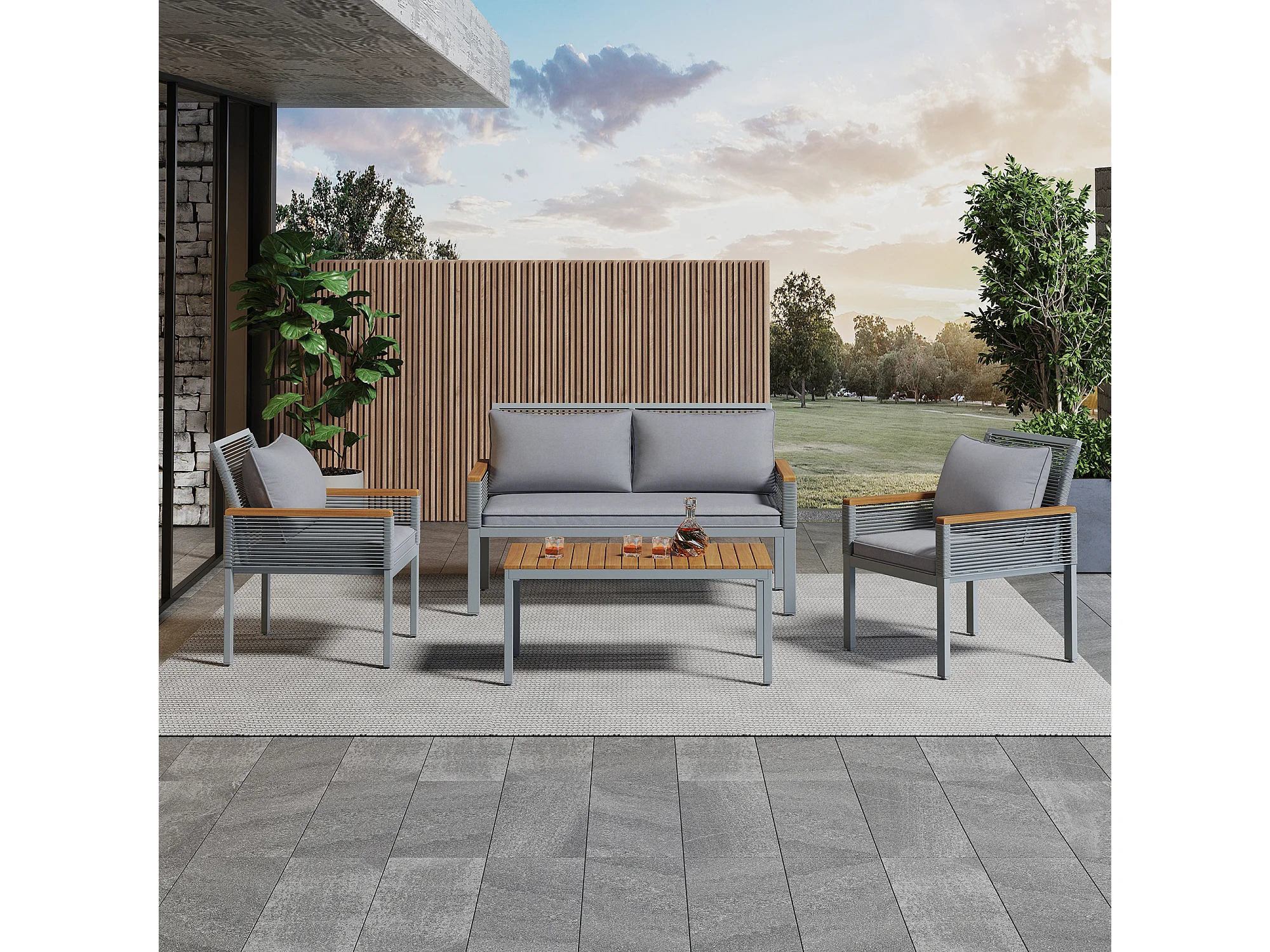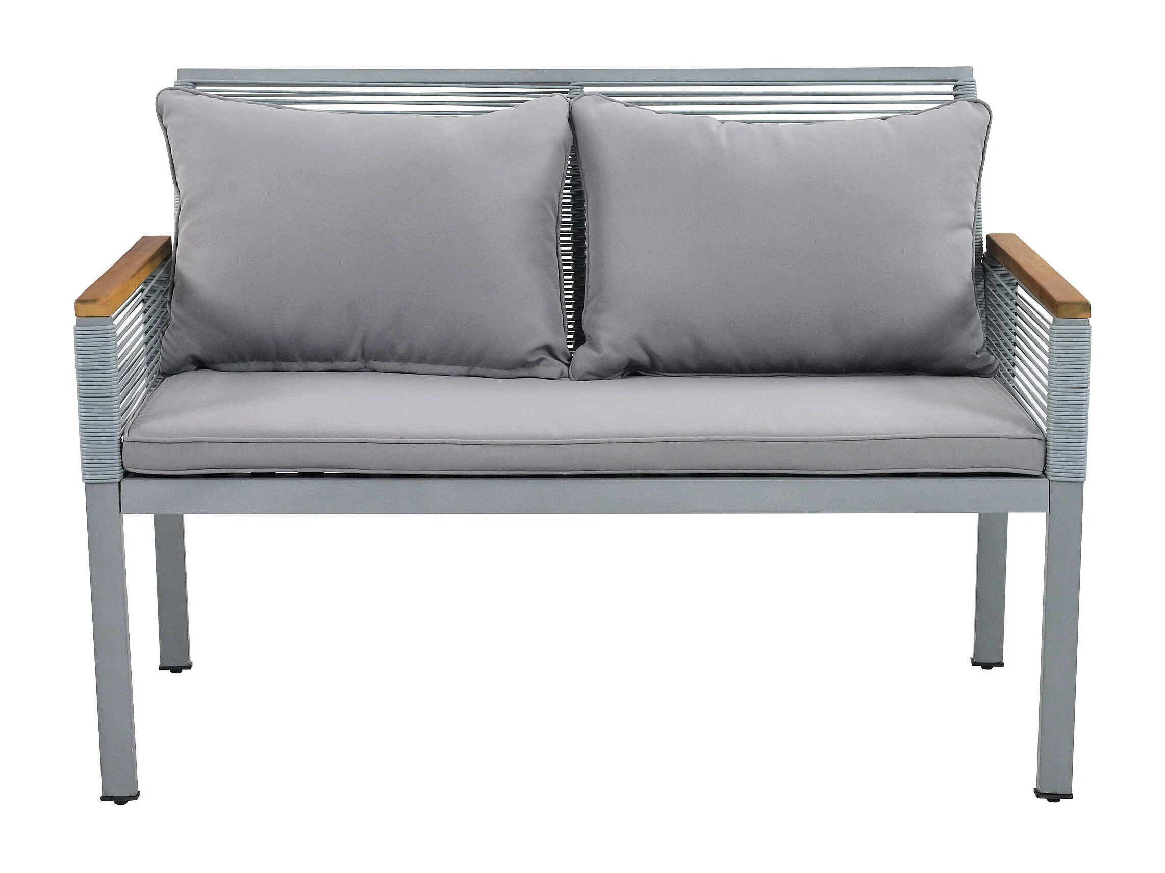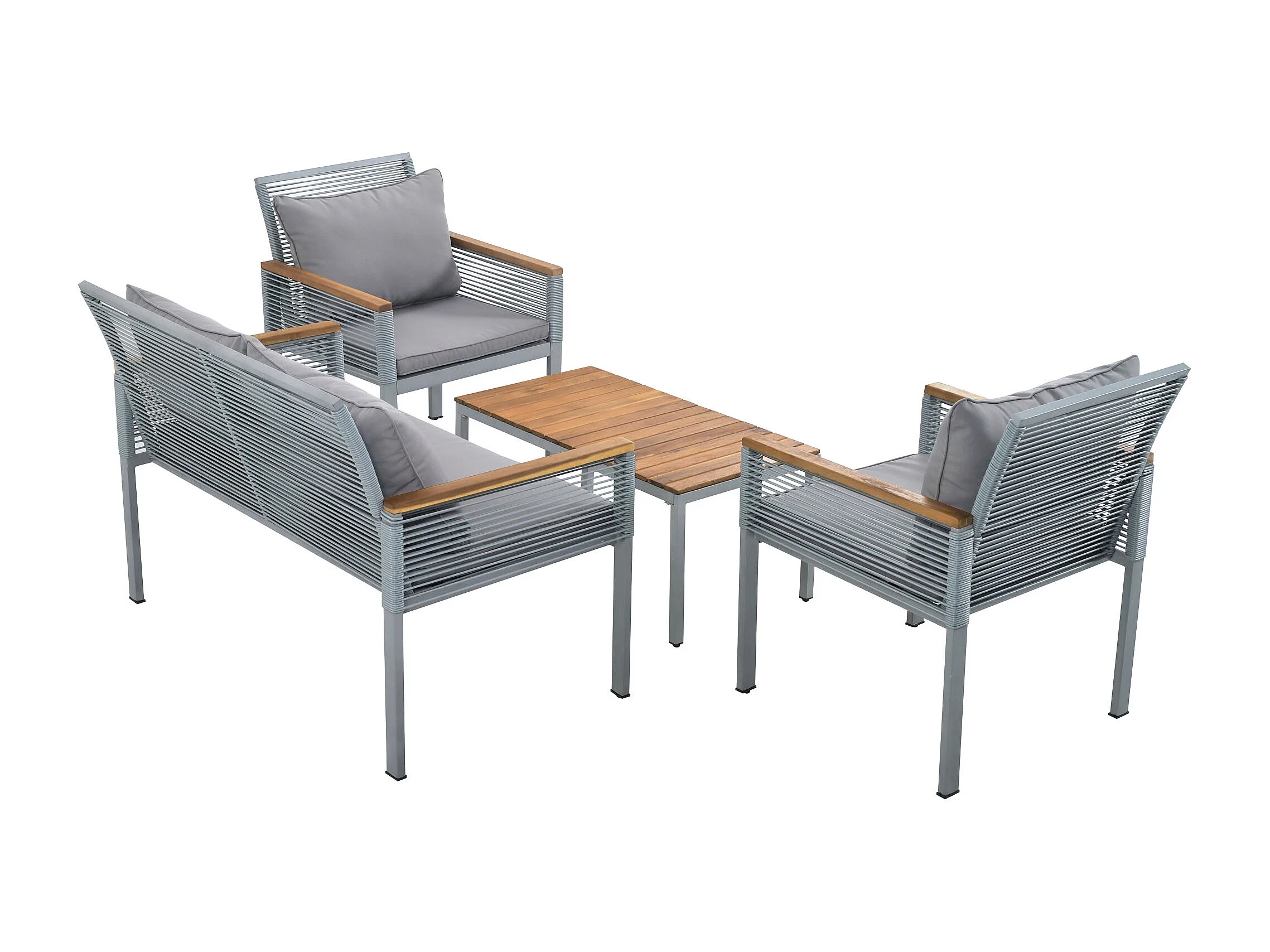 Salon de jardin acier un canapé 2 places 2 fauteuils et une table basse - gris