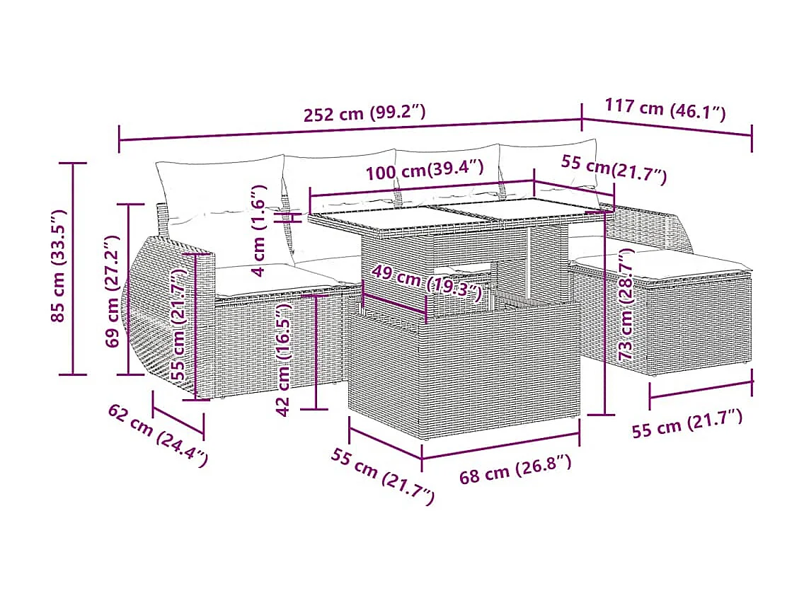 Salon de jardin avec coussins 6 pcs beige résine tressée