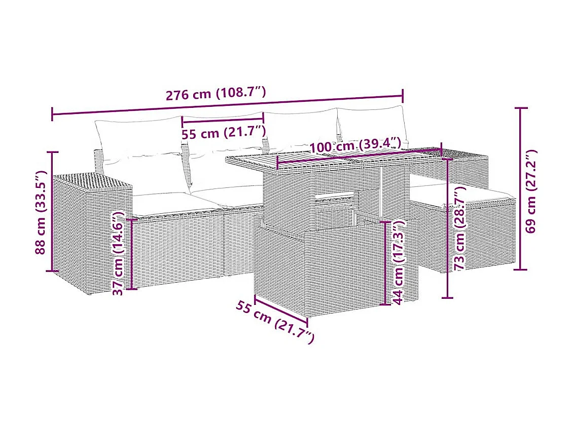 Salon de jardin avec coussins 6 pcs beige résine tressée