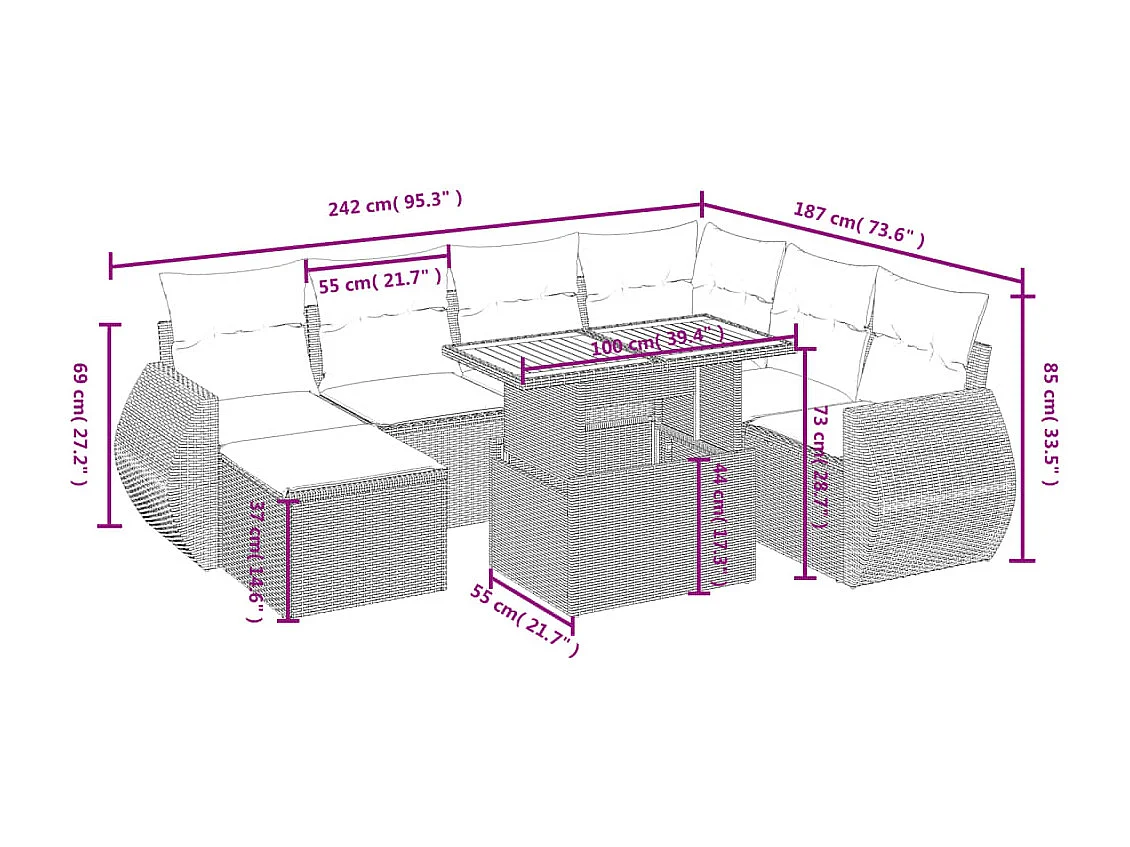 Salon de jardin avec coussins 8 pcs beige résine tressée