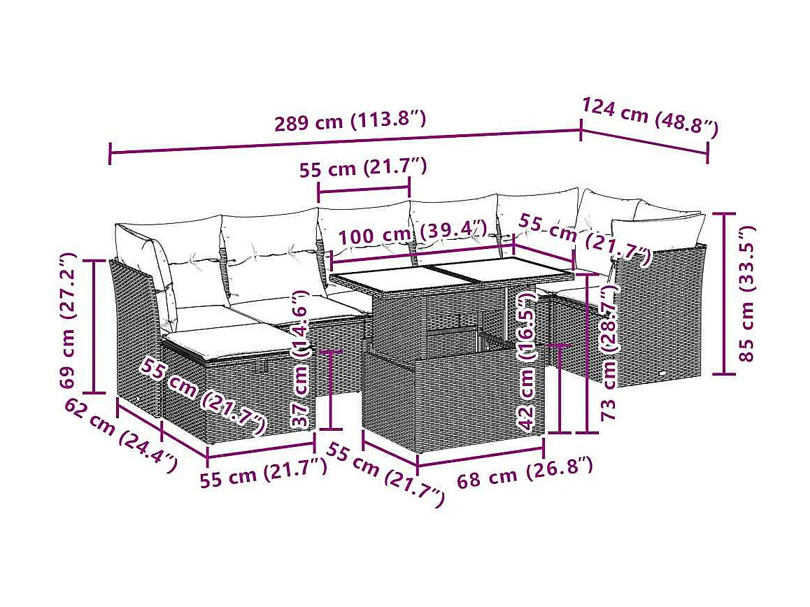 Salon de jardin avec coussins 8 pcs beige résine tressée