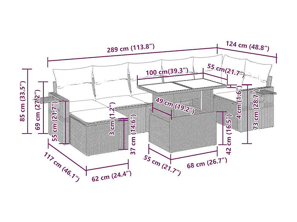 Salon de jardin avec coussins 8 pcs beige résine tressée