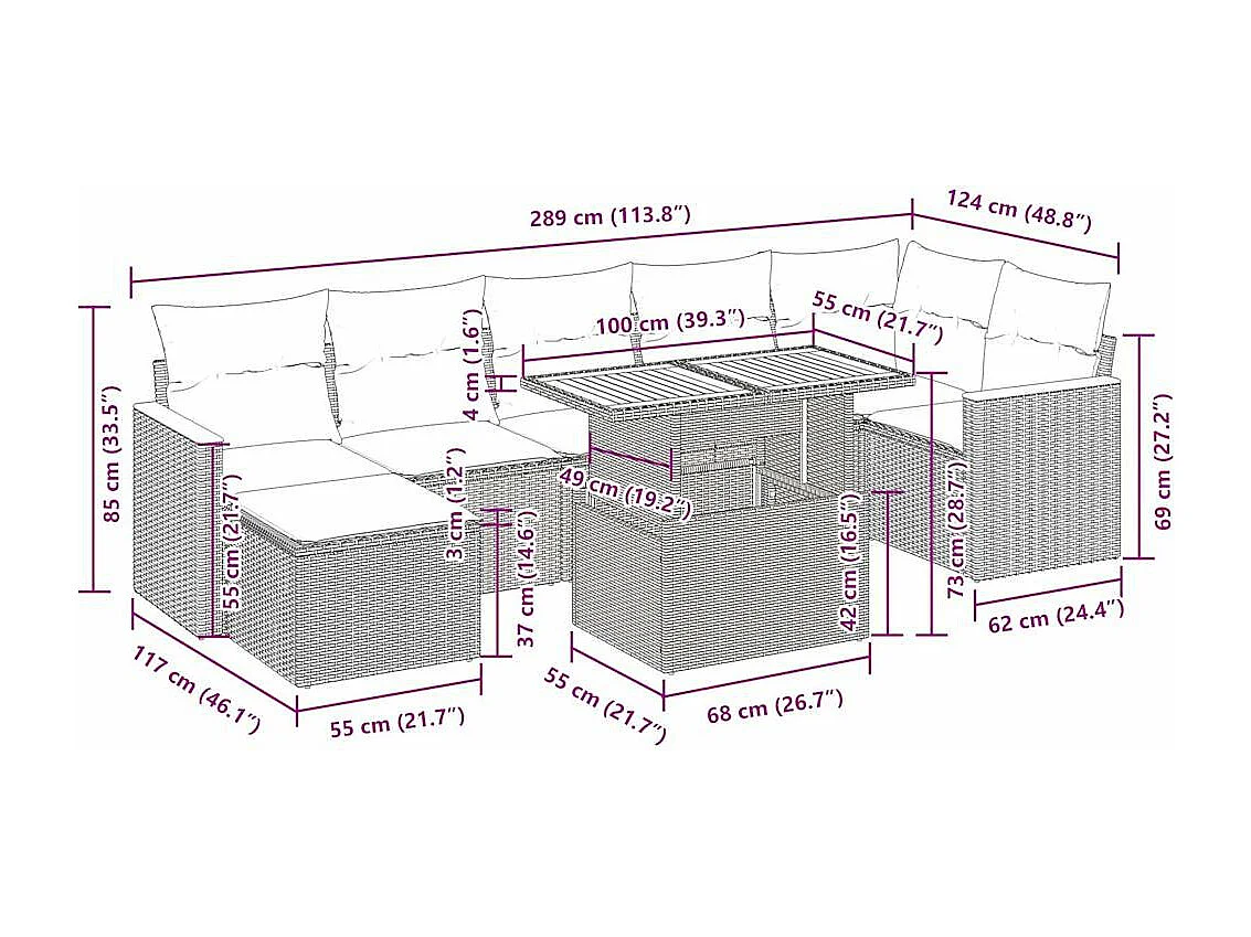 Salon de jardin avec coussins 8 pcs beige résine tressée acacia