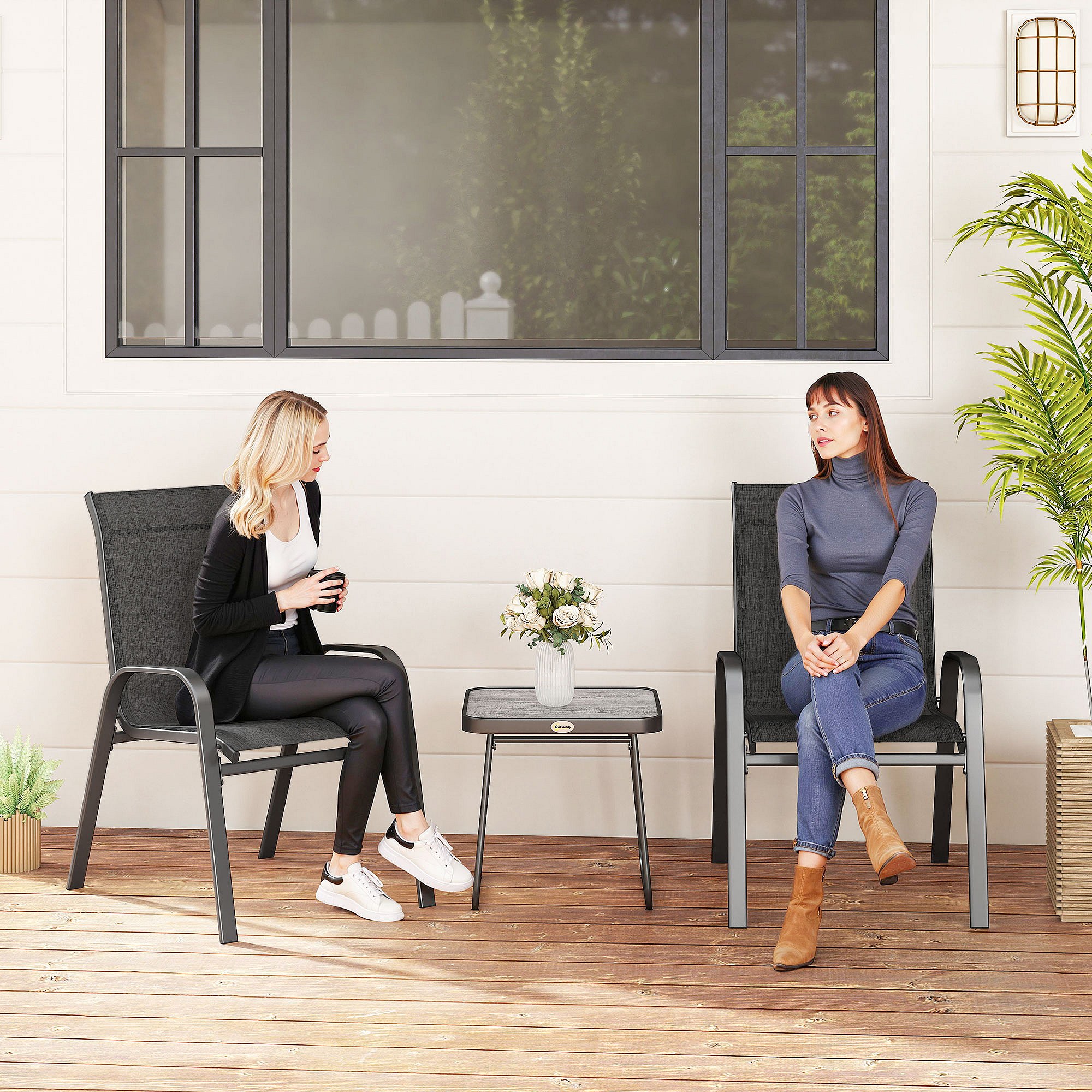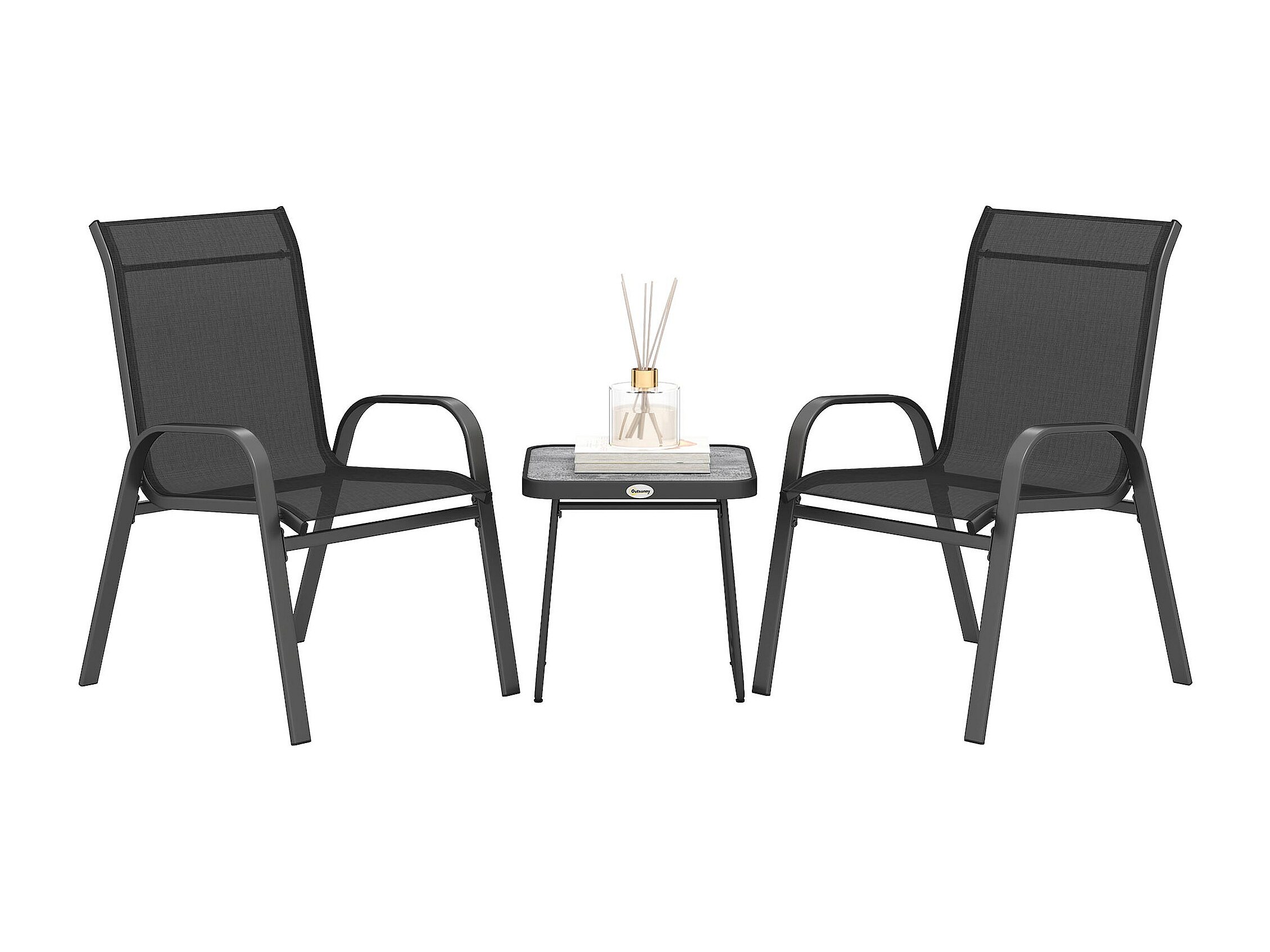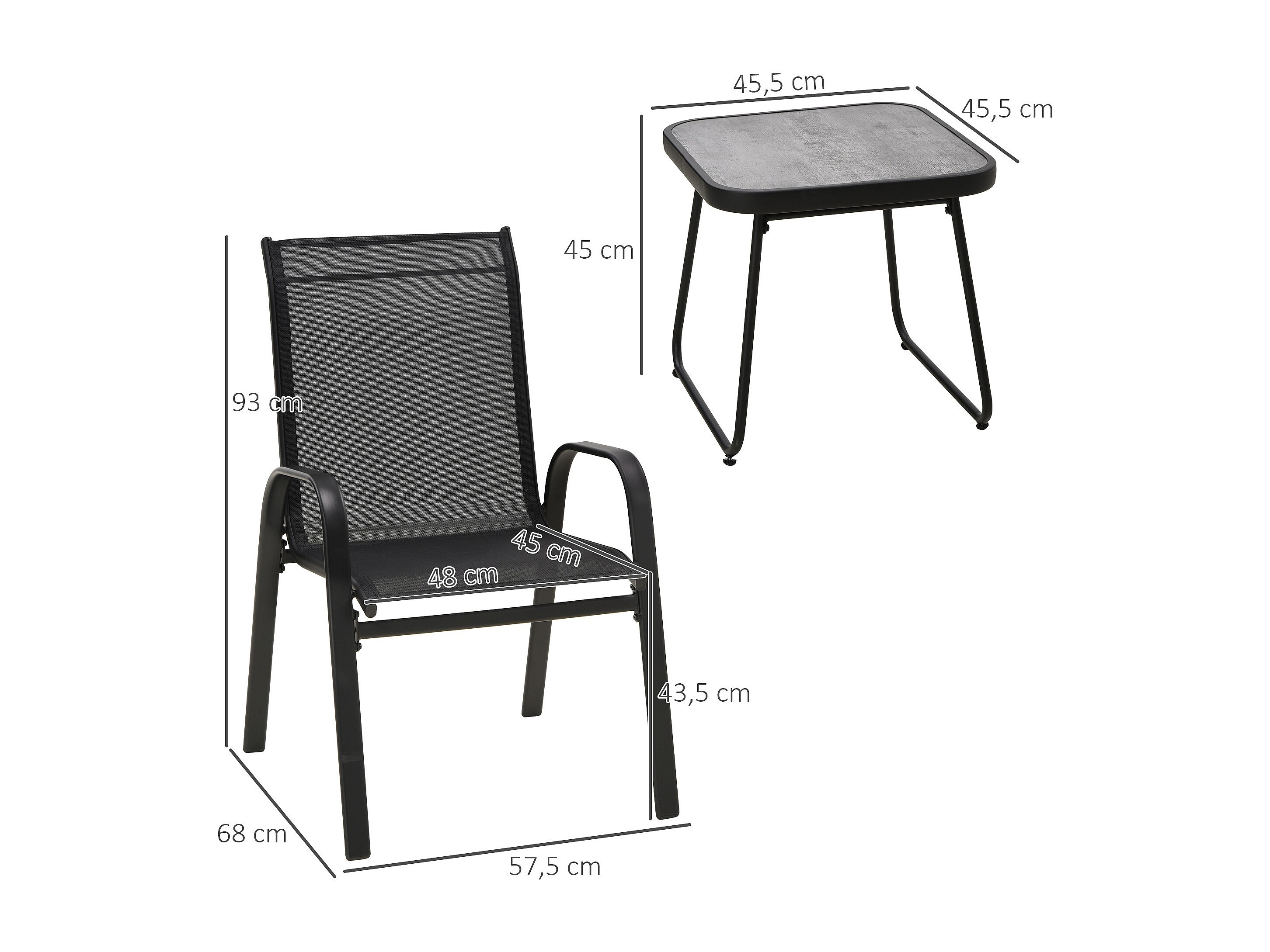 Salon de jardin bistro 2 personnes 3 pièces - plateau effet béton ciré acier époxy textilène noir