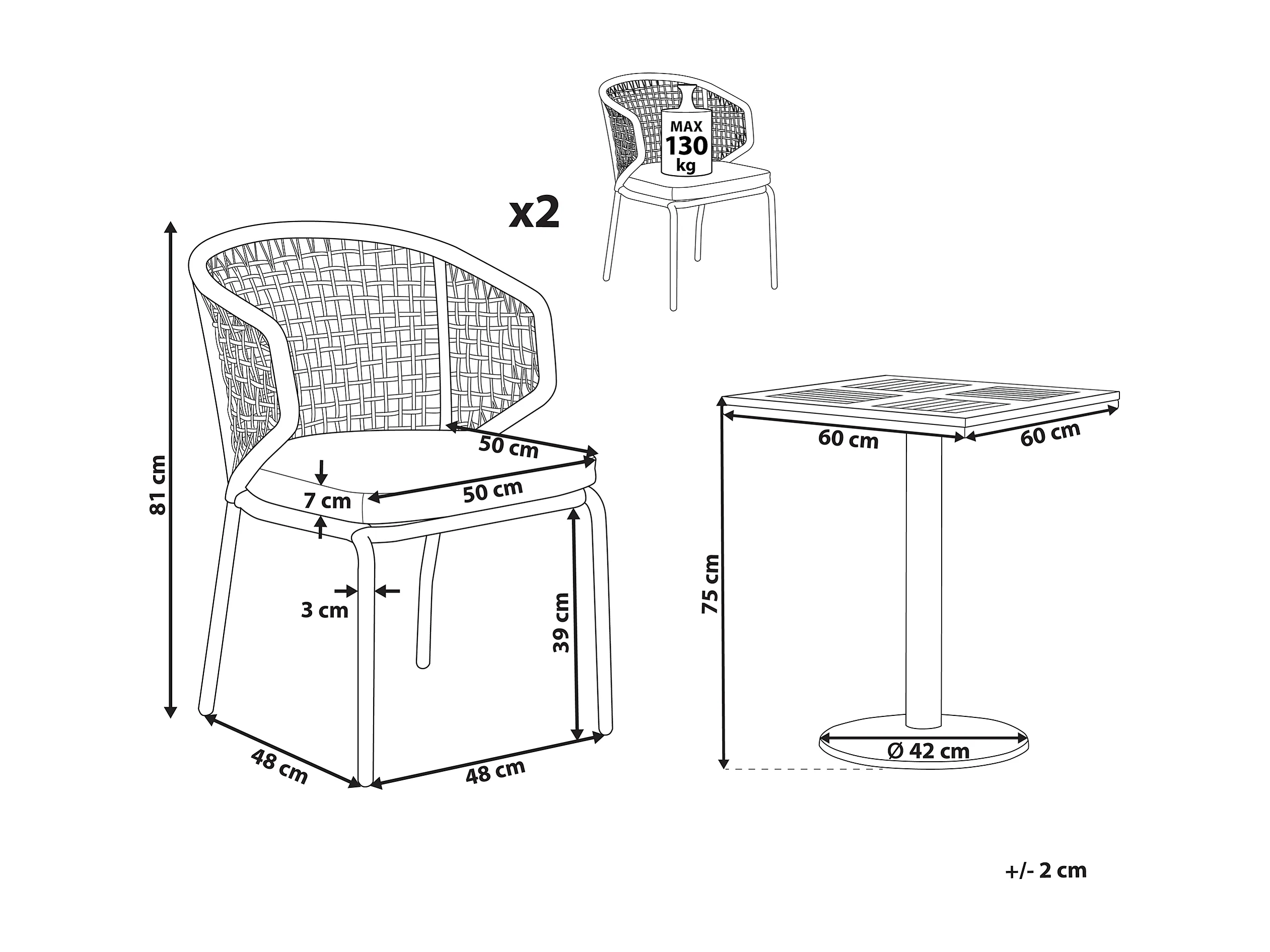 Ensemble bistrot avec coussins PALMI Métal Gris