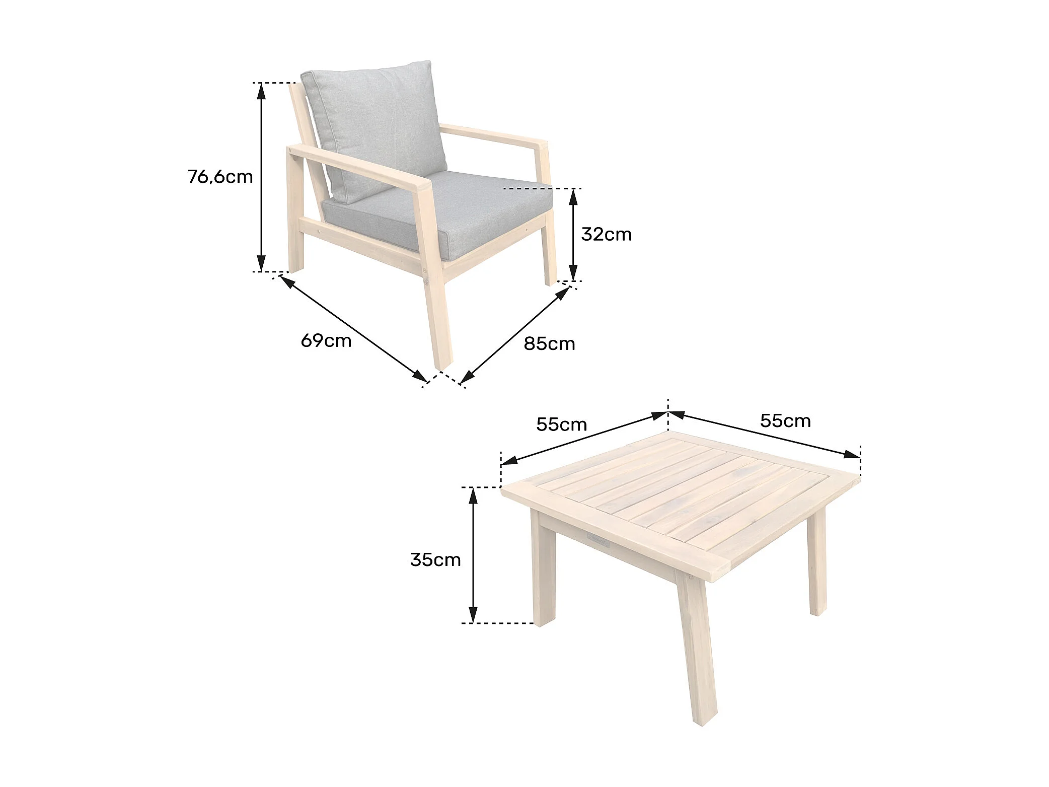 Salon de jardin en acacia 2 places GILI - coussins gris - HAPPY GARDEN
